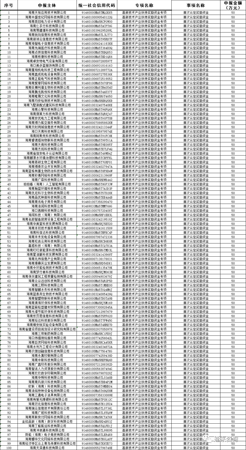 附件:2023年海口市第一批高新技术产业拟扶持奖励公示名单