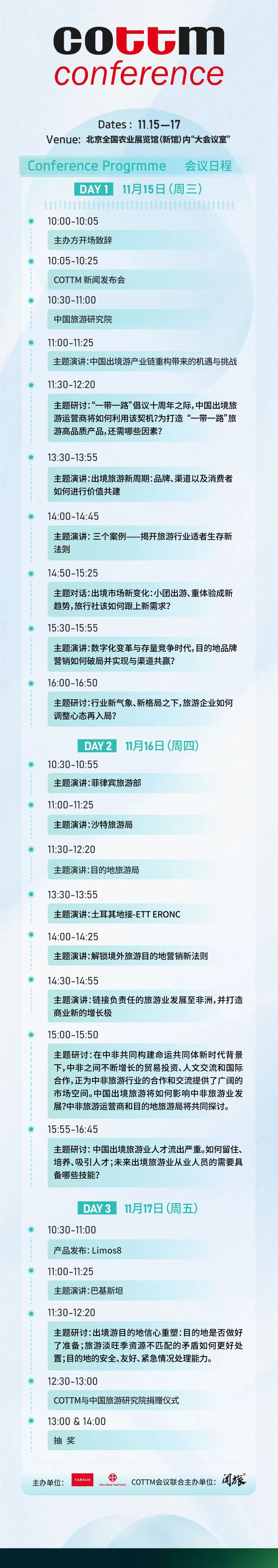 在数字化变革与存量竞争时代,目的地品牌营销如何破局并实现与渠道共赢?闻旅与中国出境旅游交易会(COTTM)联合主办的以“重构·新格局·新气象”为主题的COTTM Conference将于2023年11月15-17日在北京全国农业展览馆(新馆)正式举行。
