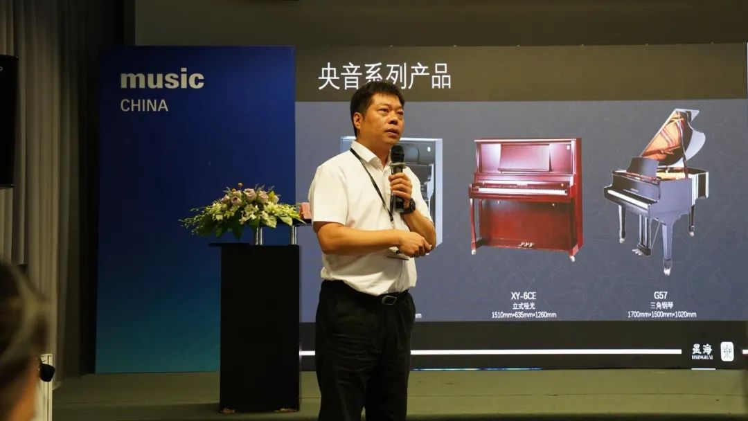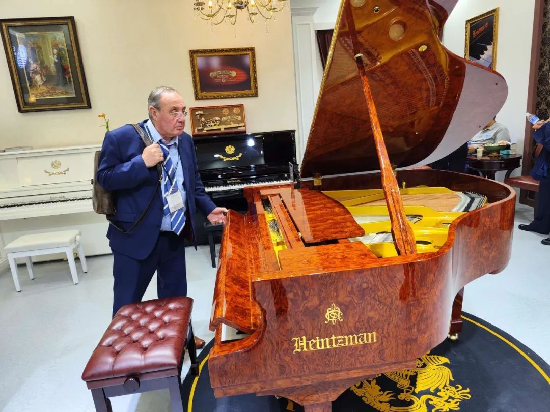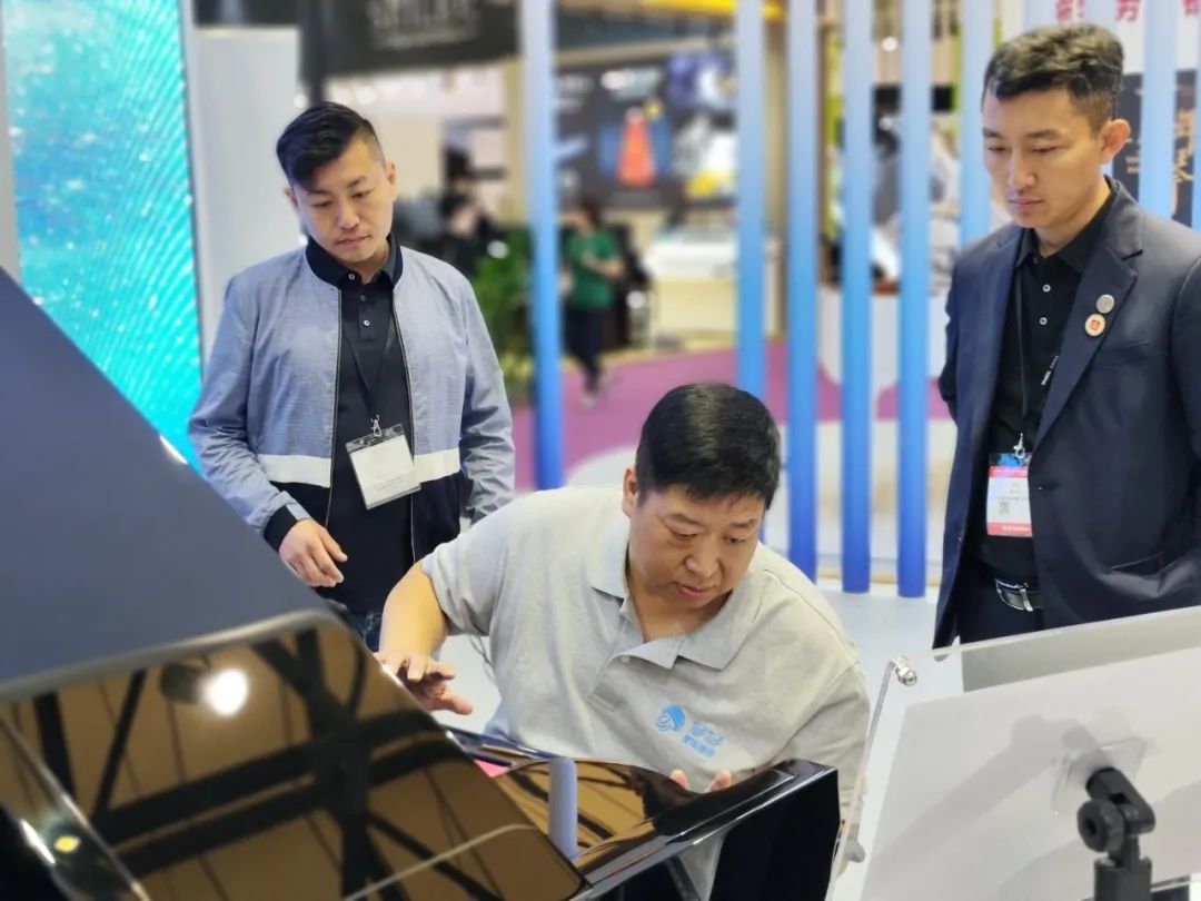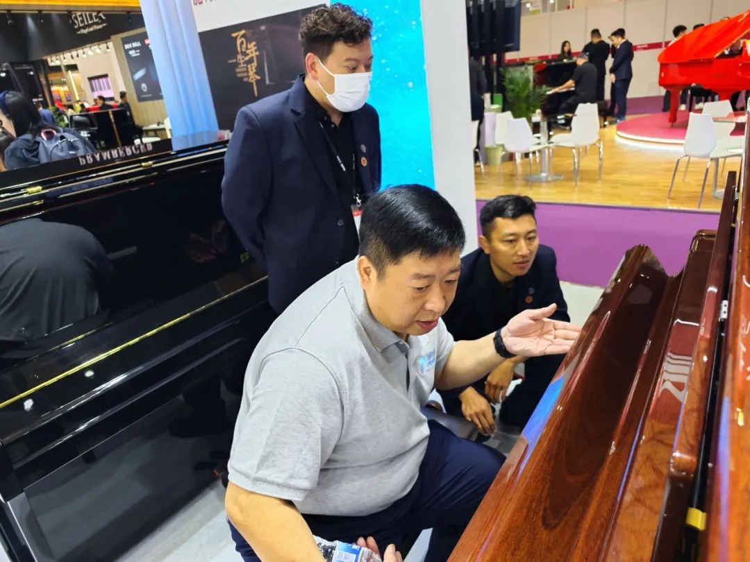 北京星海钢琴集团有限公司党委书记、董事长孟宇对星海集团展位的各个环节及产品进行了细致的指导。