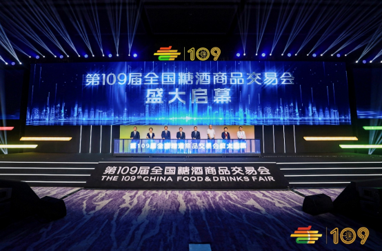 随后,栾日成,王守睿,全国糖酒会组委会主任、中粮糖业党委书记、董事长李明华,中国酒业流通协会会长王新国,中国副食流通协会会长何继红,第109届全国糖酒会首席合作伙伴汾酒股份副总经理张永踊,茅台集团张正华,五粮液股份副董事长张宇等领导嘉宾上台为大会启幕,共同开启本届糖酒会交易为王的大门。