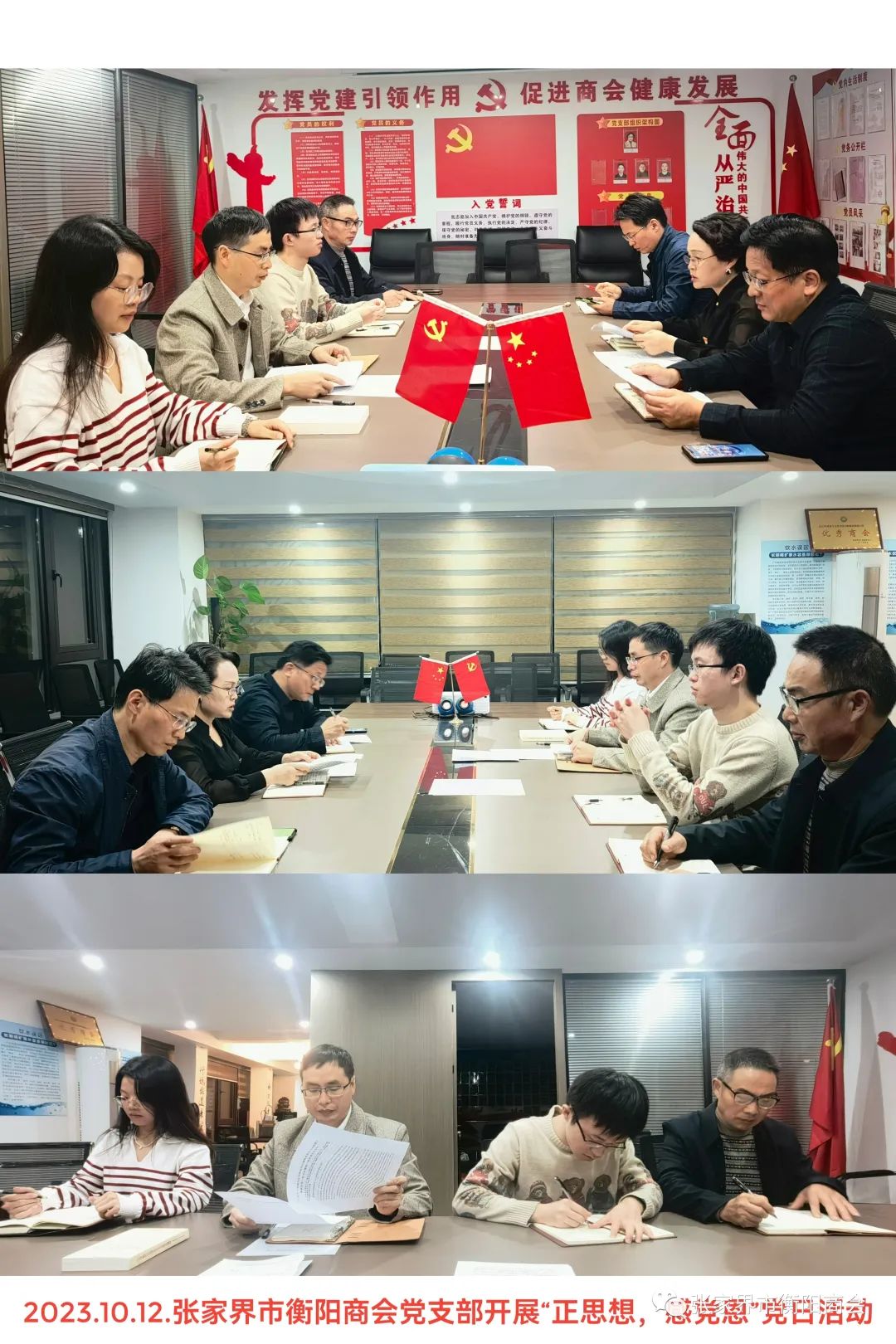 2023年10月12日,中共张家界市衡阳商会支部在商会党建室开展以“正思想,感党恩”为主题的党日活动。支部全体成员参加活动,支部书记彭顺主持活动。