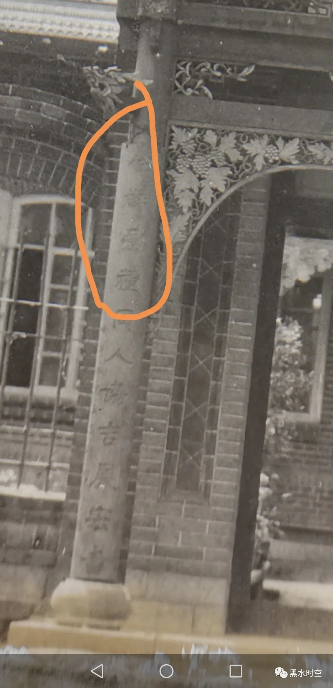 楹联是爱辉有代表性的地方文化之一,爱辉地方文史爱好者正在研究民国时黑河商会的楹联,这缘于网上旧物市场出现的一幅老照片,去年曹老师和吴哥就进行了分析,初步核清为“利用厚生福地长春开峻宇;X X X X 同人协吉展宏图。”目前,因照片模糊,下联前四个字没有确定,按常规这四个字也应该是与“利用厚生”相对应的成语。“利用厚生”指充分利用物力使人民生活富裕,出处是《尚书·大禹漠》:“正德,利用,厚生,惟和。”近义词有物尽其用等。楹联书法则像是魏碑或者隶书,写的比较平正规矩,但是不清晰。历史文化研究,很大的乐趣就是对未知领域的探索,相信在地方文史爱好者不断深入研究中会取得些许成果,这四个未知的文字也能够早日破解,使这幅楹联完璧呈现,沧海珠还。