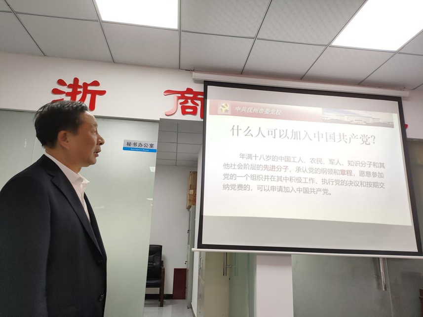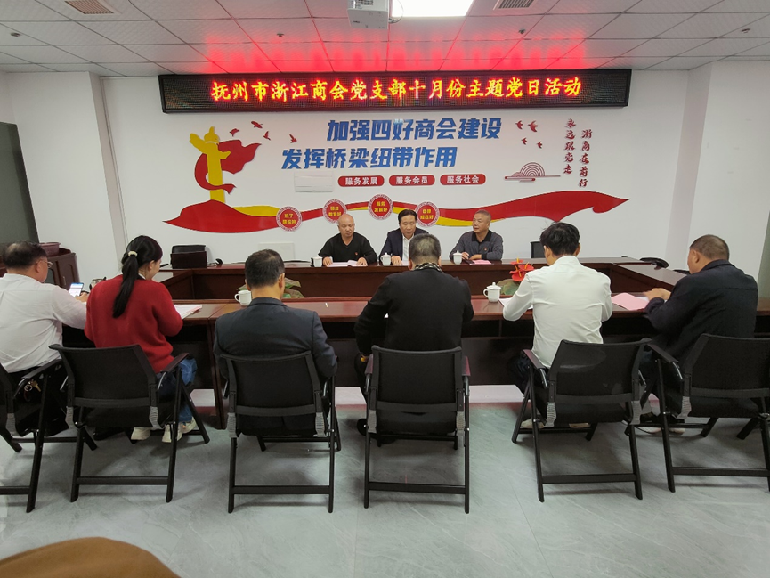 10月12日下午,抚州市浙江商会党支部在商会党员活动室召开第四季度党员大会暨开展十月份主题党日,党支部书记上党课活动。会议由党支部书记陈德勋主持。党支部党员及入党积极分子共计12人参加。