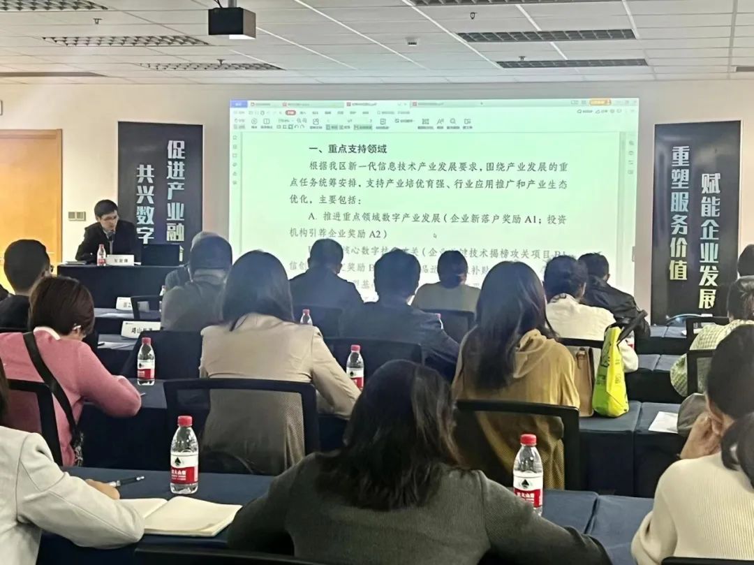 宣讲会上,工信局向与会人员进行了政策宣贯,重点对政策的适用范围、主要内容、附则及相关附件等进行解读,特别对政策适用的企业范围和前置条件等进行了详细介绍。交流环节中,企业相关业务负责人踊跃提问,工信局详细进行了解答,现场互动氛围热烈。通过此次宣讲活动,参会人员对高新区新一代信息技术产业政策有力更全面了解,活动获得企业一致好评。
