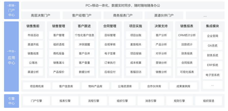 通过销售过程的规范化和线上化,不但可实现客户精细化管理;还可以对组织进行透视,评估销售漏斗的关键绩效和总体健康度;同时有灵活的商机准入制度,助力企业做好商机立项管理。最后通过产品报价管理,为不同的使用场景匹配不同的价格策略,打造竞争优势。
