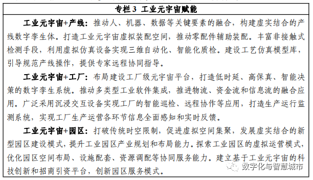(5)加快重点行业工业元宇宙布局。针对家电、汽车、船舶、航空航天、重大技术装备、电子信息制造等离散型制造业,加速实现基于工业元宇宙的跨行业协同。构建重点行业机理模型库,开发面向不同产品的个性化全生命周期管理系统。针对钢铁、纺织、电力等流程型制造业,推动工业元宇宙在物料配方优化、工艺模拟仿真等关键场景中的应用,强化流程排产、物料计算、材料追踪等预测性服务能力。