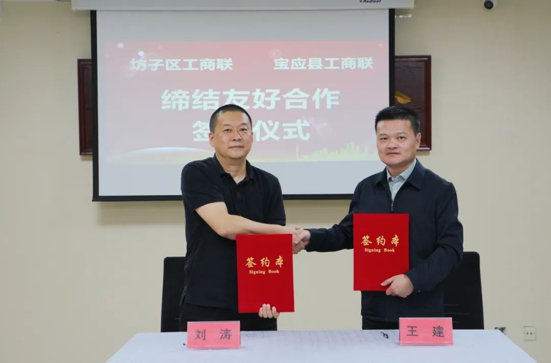 会上,坊子区工商联与宝应县工商联签订友好工商联合作协议,双方就工商联服务企业、党建等工作展开探讨交流。