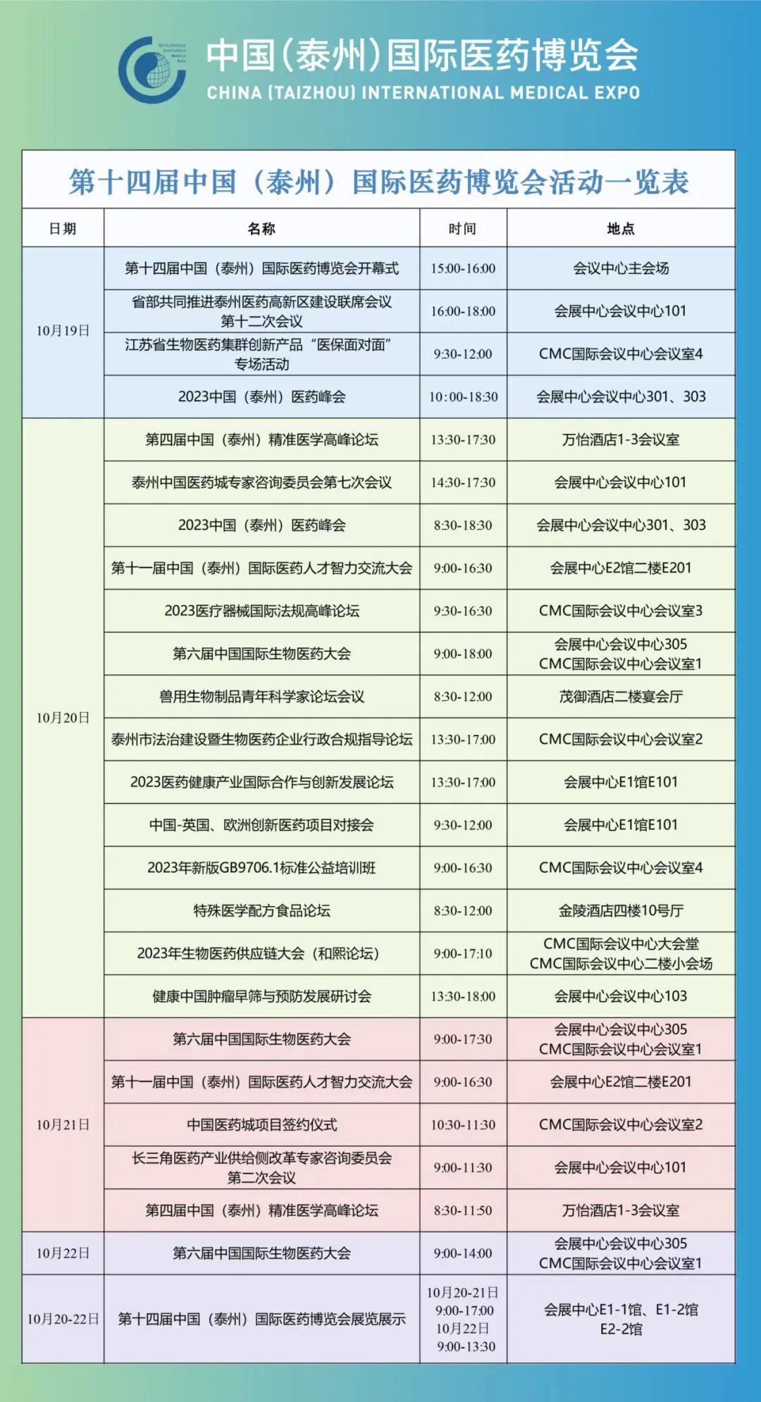 2023年10月19日-22日,由中国国际商会主办,泰州市人民政府、中国国际贸易促进委员会江苏省分会承办的第十四届中国(泰州)国际医药博览会将在江苏泰州中国医药城举行。