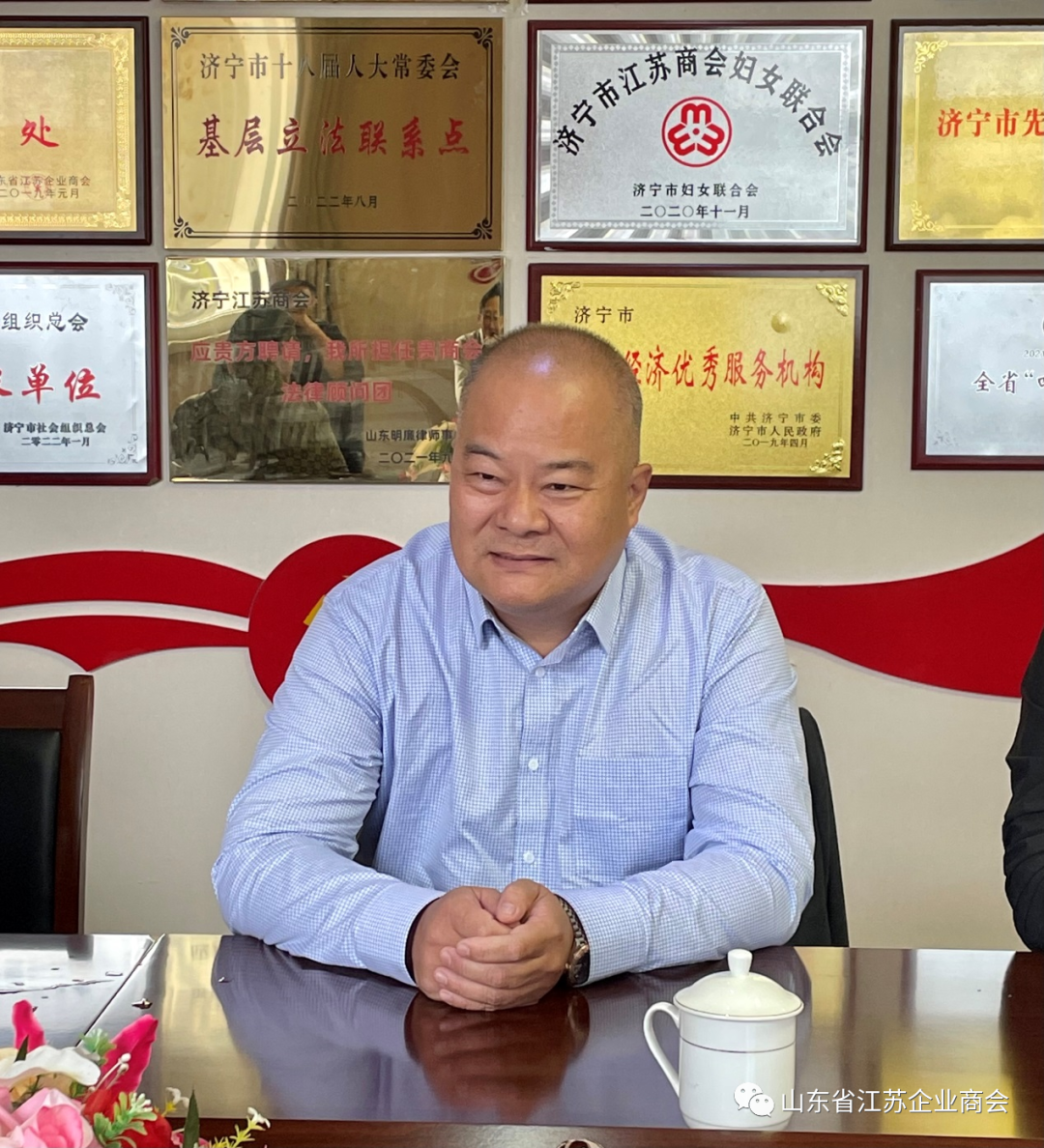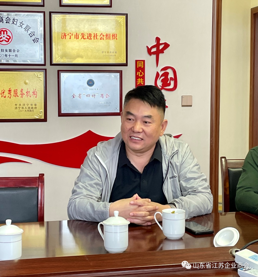 其次,会长渠永、书记邱天对李会长一行赴济宁交流表示热烈的欢迎和衷心的感谢,并简要介绍了商会建设的有关情况。