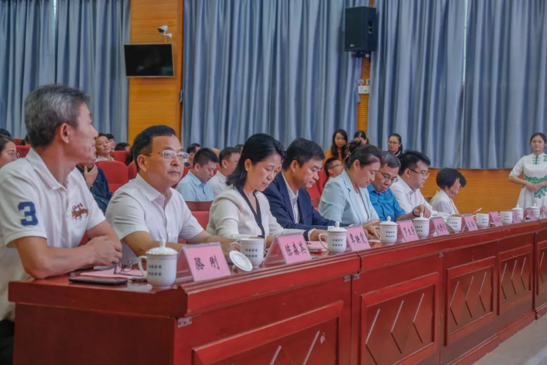 中国茶叶流通协会副会长姚静波,广西职业技术学院院长、教授梁裕,广西经贸职业技术学院党委副书记、校长、教授罗生芳,梧州市政府副秘书长、市茶产业发展中心主任孙本旭,梧州市教育工委书记、教育局党组书记、局长覃映霞,梧州职业学院党委书记时伟,梧州职业学院党委副书记、院长陈森英出席大会。相关部门单位、媒体和六堡茶企业、制茶大师、非遗传承人代表共同参加。