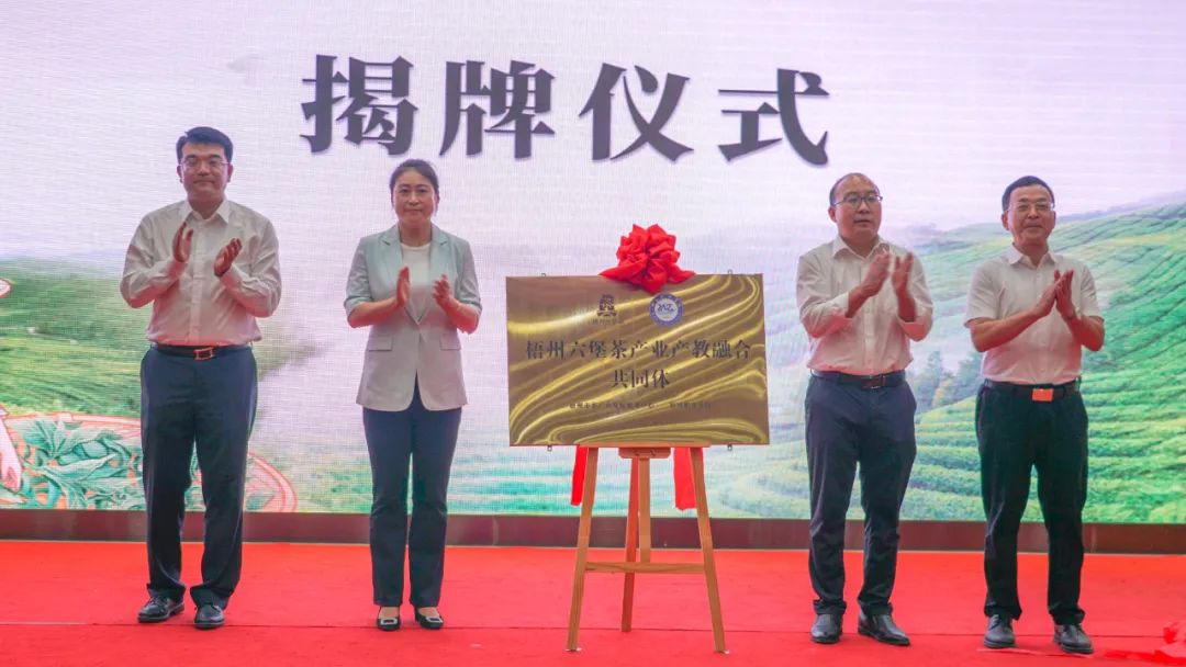 现场嘉宾为梧州六堡茶产业产教融合共同体揭牌