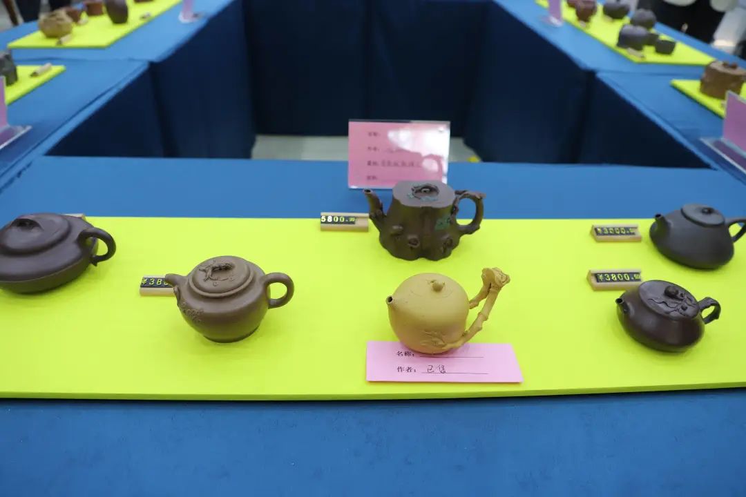 紫砂博览会上,不仅有传统造型的紫砂壶,更有十二生肖、树桩、螃蟹等创意造型的紫砂壶。因为是纯手工制作,每把壶都是独一无二的。博览会刚开始,不少壶已经是“已售出”状态。