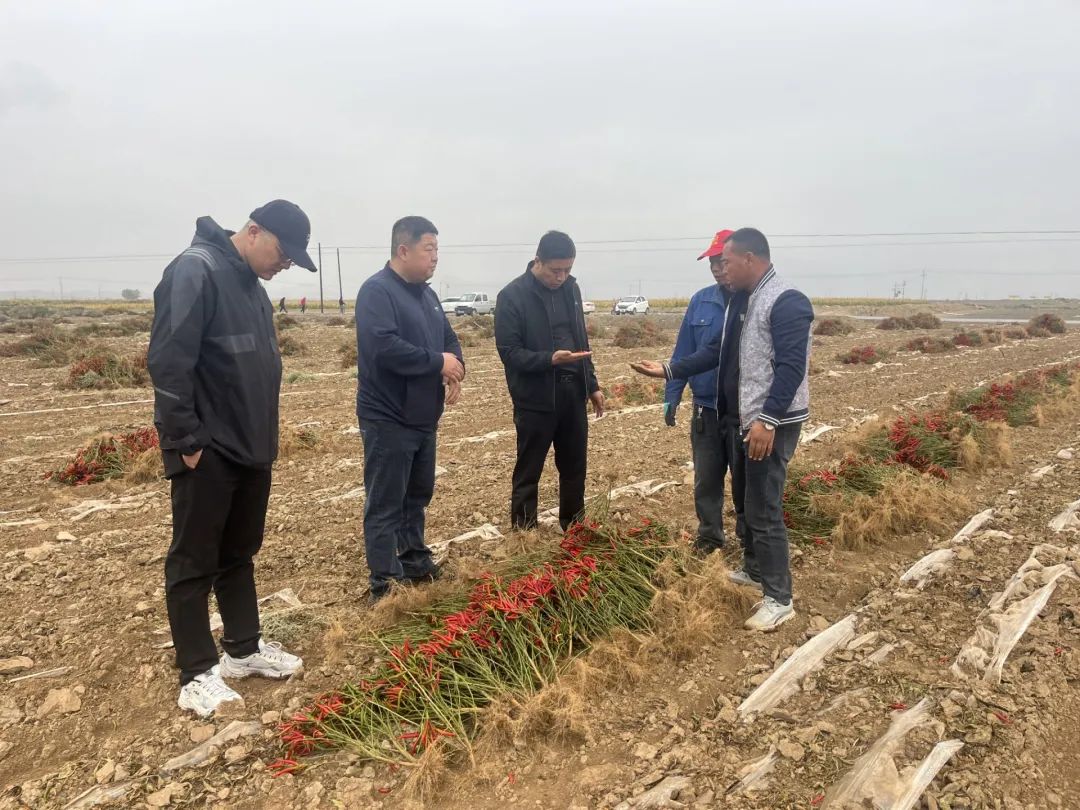副乡长田进成与水投公司在景庄村查看2024年辣椒种植基地