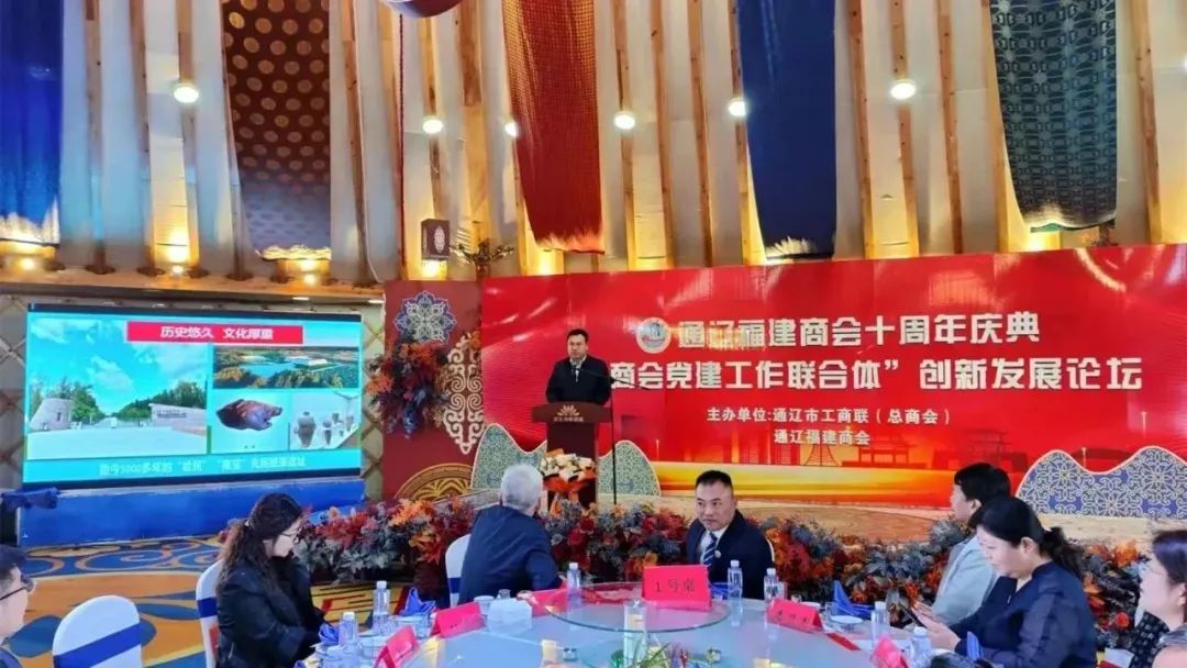市委统战部副部长、工商联党组书记战青林在致辞中表示,今天通辽福建商会召开十周年庆典暨“商会党建工作联合体”创新发展论坛,既是重温商会十年发展历程、展示商会十年发展成就、总结商会十年发展经验,也是“商会党建工作联合体”平台的实践展示,更是谋划新的征程,抒写未来美好篇章。并对通辽福建商会未来发展提出希望。