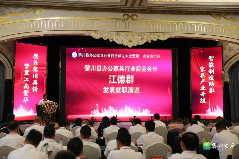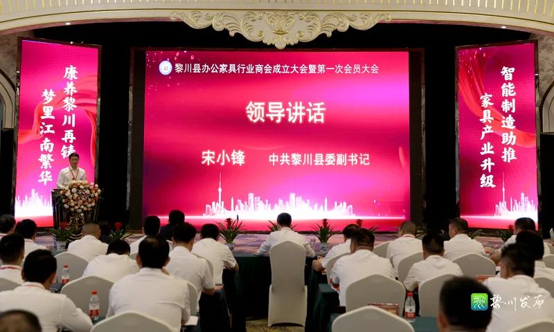 宋小锋在致辞中向商会的成立和第一届商会班子的当选表示热烈祝贺,并指出,近年来,我县立足家具产业现有基础,制定出台了产业发展规划,推动建成了集家具生产、研发设计、物流仓储、会展交易于一体的家具产业园,基本实现了“筑巢引凤”的目标,为我县家具产业发展驶入快车道打下了坚实的基础。办公家具行业商会的成立,更标志着黎川家具产业开启了联动发展的新阶段,必将推进家具产业更快、更高质量地发展。