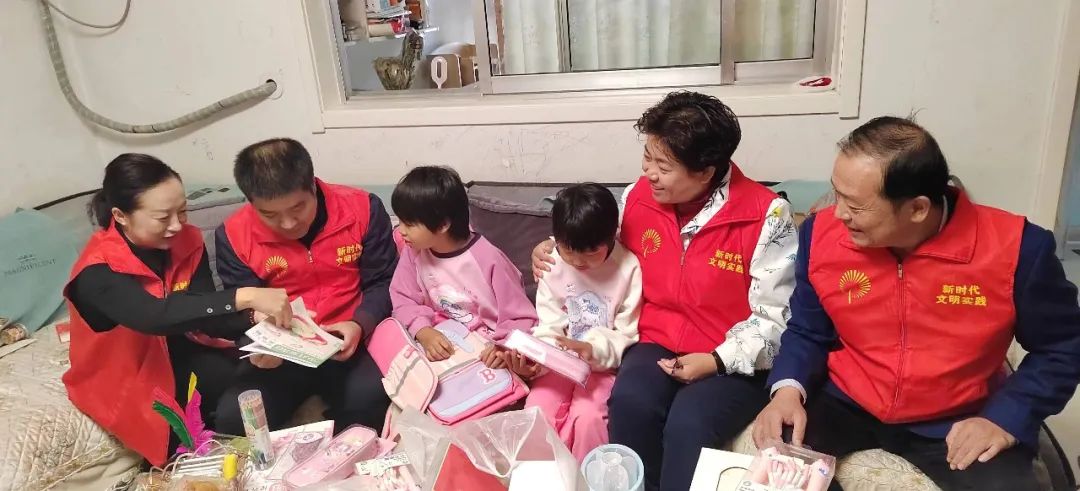 慰问小组一行来到关爱儿童的家中,并送上学习用品和书籍,鼓励他们要好好学习,用知识改变自己的命运,嘱咐他们上下学途中注意安全,祝愿他们快乐生活、健康成长。