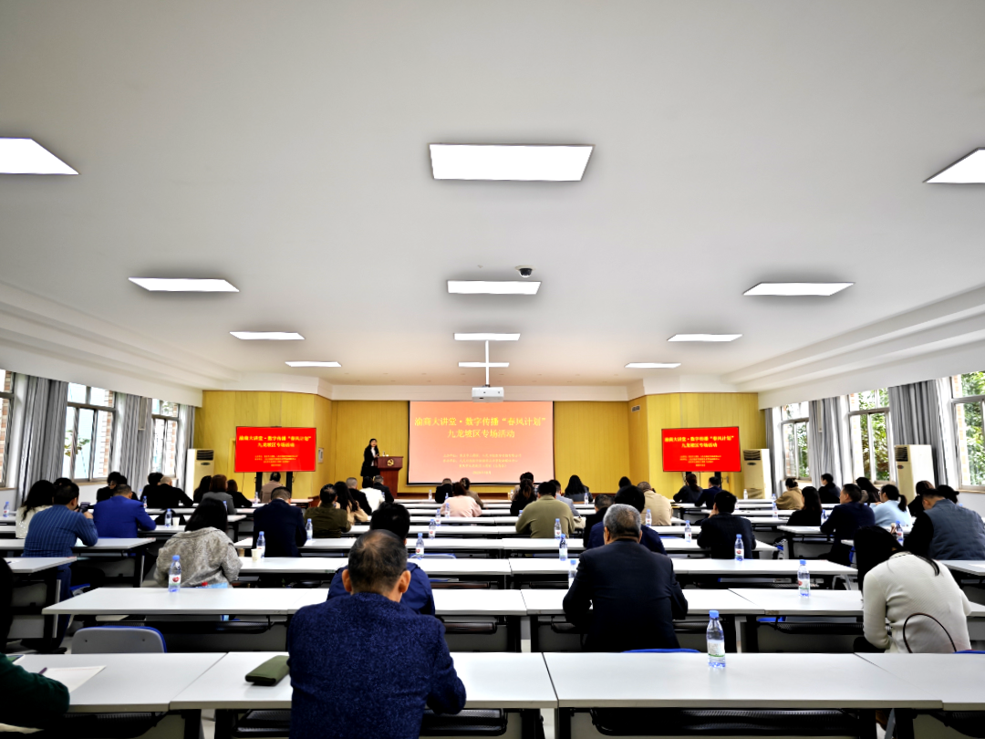 2023年10月13日,渝商大讲堂•数字传播“春风计划”九龙坡区专场活动在区委党校学术报告厅举行。活动特邀巨量引擎官方服务讲师、原喜马拉雅重庆公司营销总监王紫竹女士作主旨演讲。活动由区委统战部副部长、区工商联党组书记潘俐主持,区工商联各基层商会企业家代表80余人参加活动。二郎街道商会秘书长游竣雅和四家会员企业代表参加此次活动。