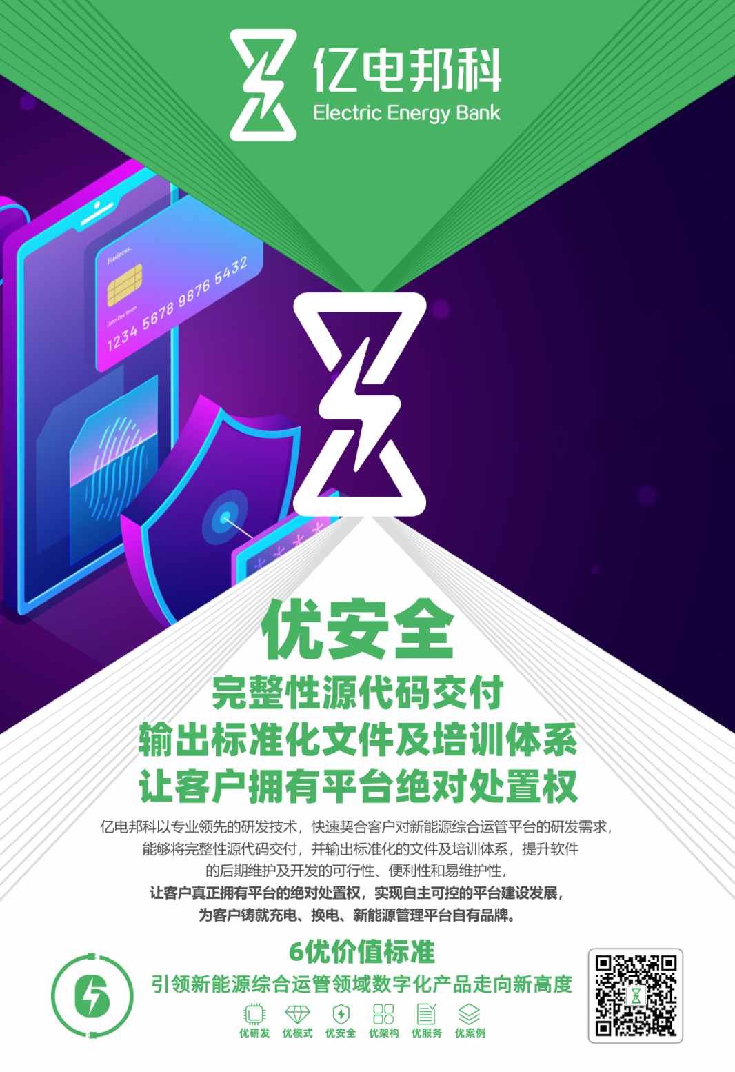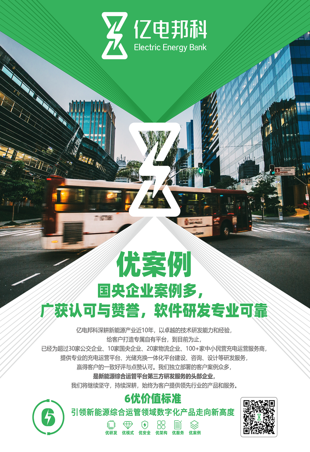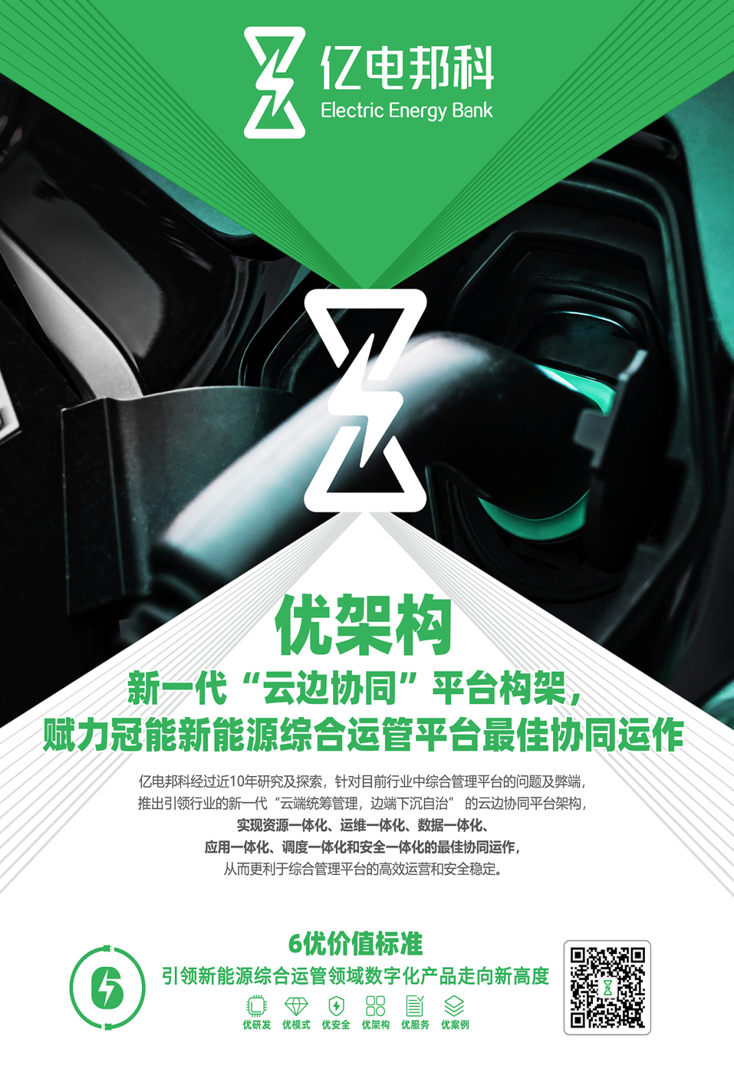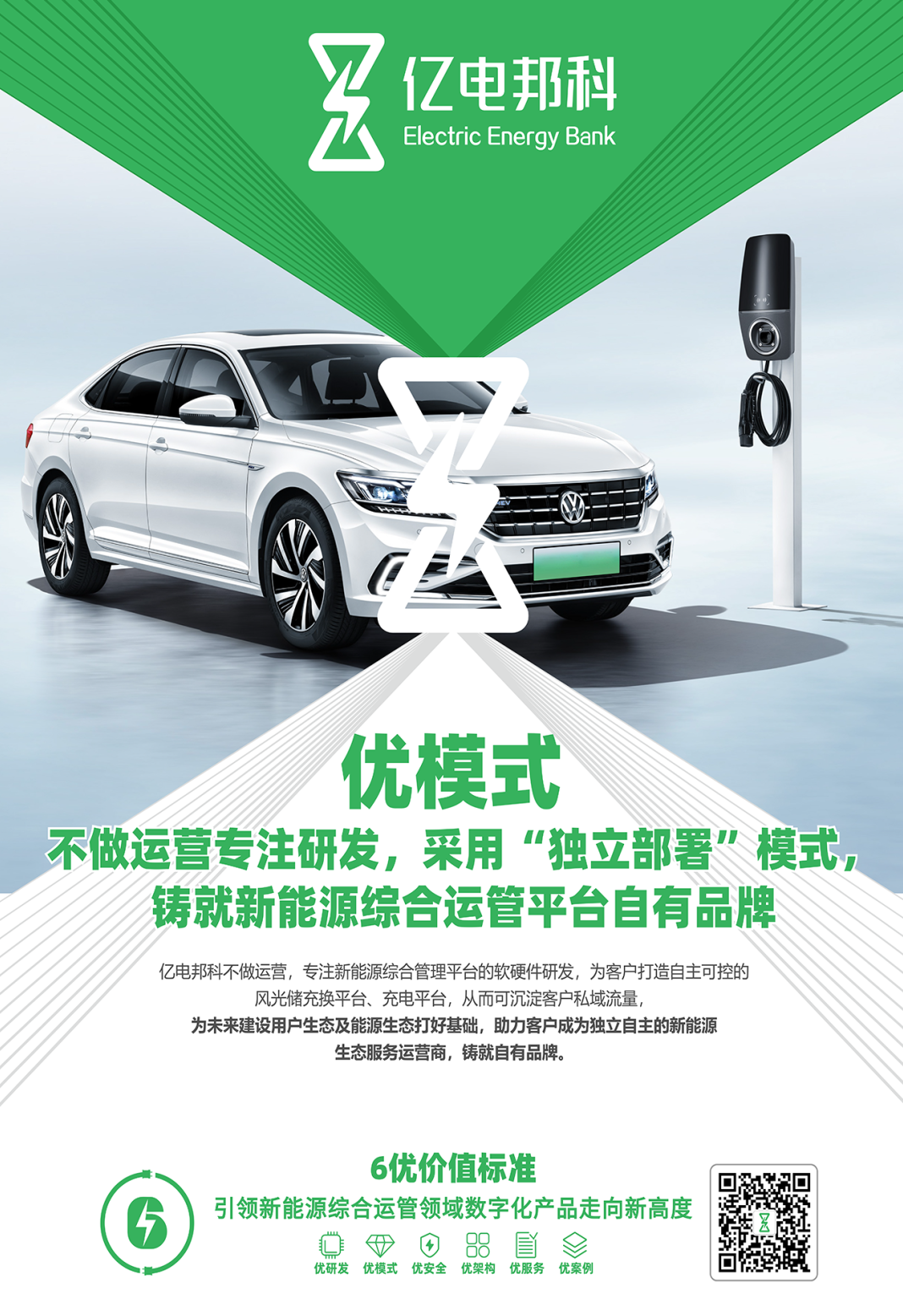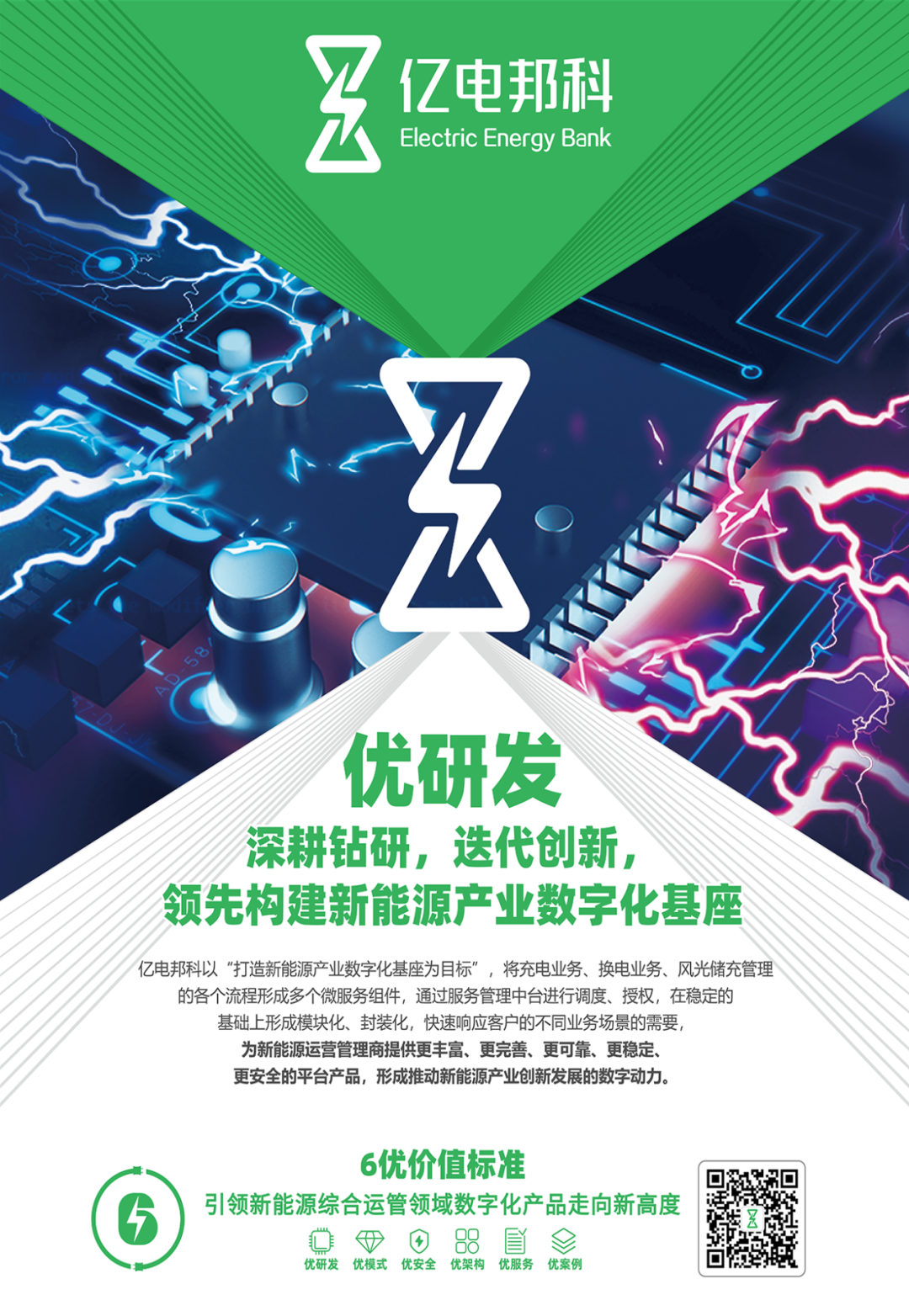 亿电邦科作为中国领先的新能源综合运管平台新一代数字服务商,业务涵盖建设咨询、方案规划、标准制定、平台研发、平台运维、技术对接、设备赋能七大方面,多方赋能客户从单一业务场景向行业全生态体系的横向聚合扩展,帮助客户进行业务的转型或升级;同时,以客户实际发展规划为基点,帮助客户对既有信息化管理工具进行全面升级,赋能客户更多元化的业务模式与更精细化的经营管理能力。