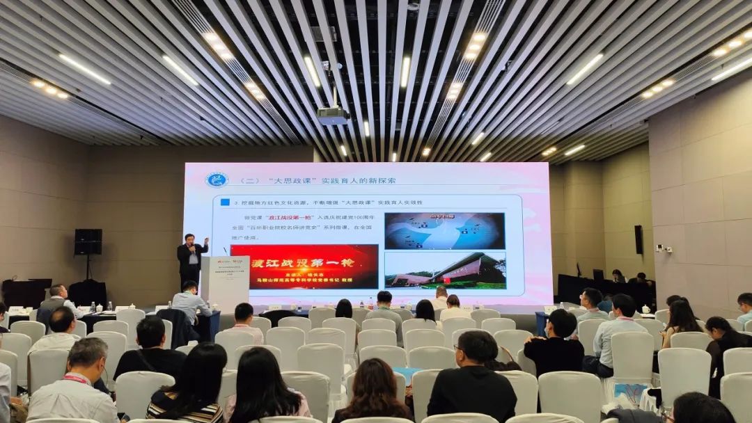 喻长志分别从红色资源融合信息技术/“红蓝融合”的基本内涵、“大思政课”实践育人的新理念与新探索,以及“大思政课”实践育人的新突破等三个方面,重点介绍了学校在构建大思政课体系、着力形成思政工作整体合力的做法措施、主要成效和工作思考。他说,“红蓝融合”即“红色教育+信息技术”“传统+互联网”,意指思想政治工作本体和信息网络载体有机结合、深度融合、功能耦合。“红蓝融合”的思维理念,是思想政治工作创新发展的成果,为思想政治工作插上信息化翅膀,更好地发挥新时代思想政治工作生命线作用,目的是在新时代让“红色传统”在“蓝色信息海洋”中发挥最大优势、最大效能。