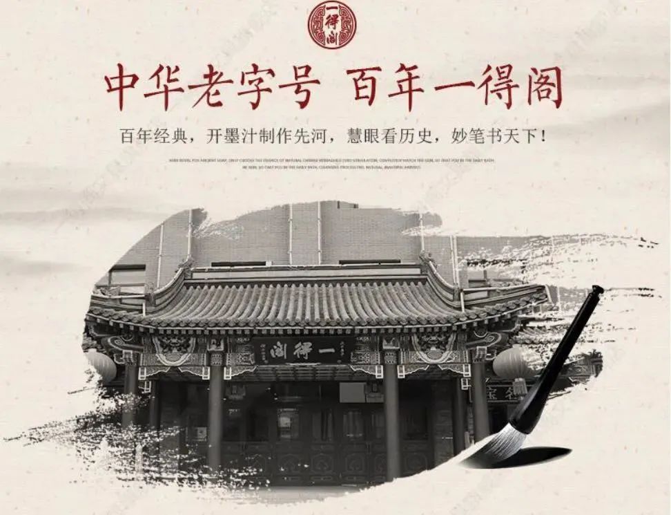 “一得阁”主营墨汁,其字号名称的由来与其创办人谢松岱咏赞墨汁的一副对联有关。清同治年间,湖南文人谢松岱进京赶考,虽未考中,但在考试过程中,有一件事对他触动颇深,成为他创办“一得阁”的直接诱因。在考场上,考生们需要现场研墨,费时费力,占用了答卷的时间,也会影响考生的思路,这一问题引起了谢松岱的思考,他想:如果能有一种直接书写的墨汁,不需要在用的时候现磨,不就可以省时省力了吗?这样的话,考生就不用再受边答题、边磨墨之困扰了。经过多次试验,谢松岱最后选用油烟,再加上其他辅料,制成了与墨块效果相同的墨汁。墨汁一上市,便大受欢迎。同治四年,谢松岱在北京琉璃厂44号开设了第一家生产、经营墨汁的店铺,并撰写了一副对联——“一艺足供天下用,得法多自古人书”,既表达了对墨汁的赞美之情,又表示了对前人的感谢之意。这家开风气之先的墨汁店店名“一得阁”中的“一”和“得”就分别取自对联上、下联的第一个字。现在位于北京琉璃厂东街的“一得阁”门店所悬牌匾也是谢崧岱在1865年开业时所书。