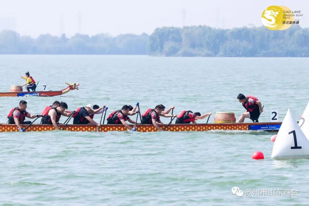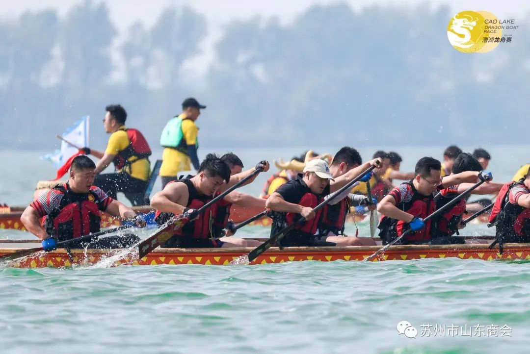 苏州市山东商会龙舟队队员团结协作,百舸争先,意气风发,经过一番激烈角逐,在预赛中取得1分32秒小组第三的好成绩。