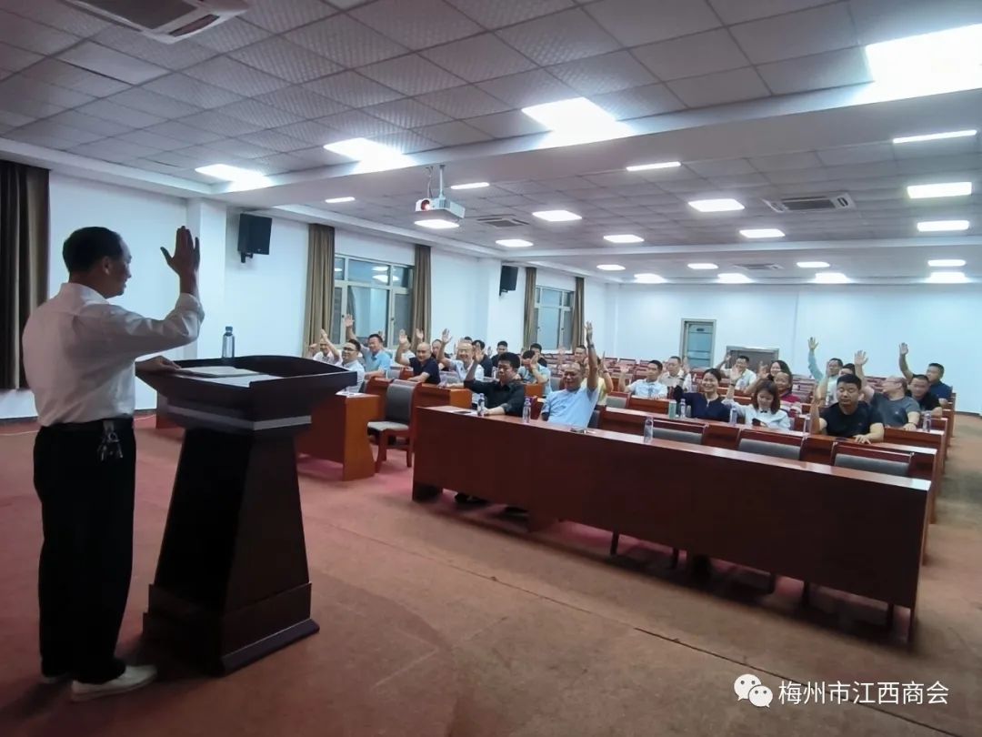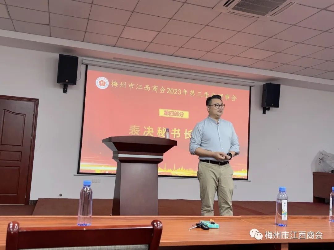 议程四、因现任秘书长有新的发展,根据商会会长办公会议以及多位会长推荐,拟任副会长温亮兴为梅州市江西商会第三届理事会秘书长职务事宜进行理事会举手表决,与会人员一致全票通过。