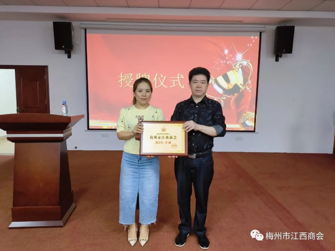 议程二、由商会执行会长童木连为新增副会长余兵、章燕颁发牌匾,商会的发展离不开队伍的壮大,相信新成员的加入将给商会带来新的朝气。