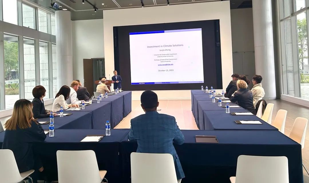 10月13日,上海美国商会苏州中心在昆山杜克大学举办了总经理交流会:昆山杜克大学之旅。在此次活动中,虞亮主任分享了在数字时代如何培养未来领袖的使命驱动力和植根于本土的全球领导力。随后,刘鹤主任介绍了昆山杜克大学职业发展部如何帮助学生在学习和生活中共同进步和发展。最后,张俊杰教授主要围绕绿色金融、双碳政策、企业低碳与转型等领域进行了讲解。张俊杰教授还就近期热点话题进行了深入探讨:环境、社会与治理(ESG)。随后带领参与嘉宾参观了昆山杜克大学的校园二期建设,嘉宾纷纷称赞校园很美,建设很多元化。此外,参与嘉宾也表示对企业的低碳转型和可持续发展有了进一步的认识。