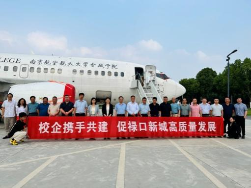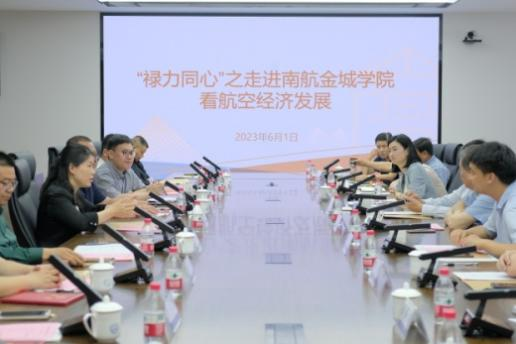 为加强校企合作交流,6月1日下午,禄口街道商会理事成员及街道统战办人员一行三十余人到我校开展校企合作交流与考察。交流会议在德馨楼501会议室召开。禄口街道副书记、政协工委主任戴孝林,统战委员业蕾,商会会长周承进,秘书长陈贤华以及商会全体理事成员参加会议。南航金城学院校党委副书记、副校长刘晓磊,航空运输与工程学院党总支书记胡天敏、副书记李喆阳,以及部分骨干教师参加了此次会议。
