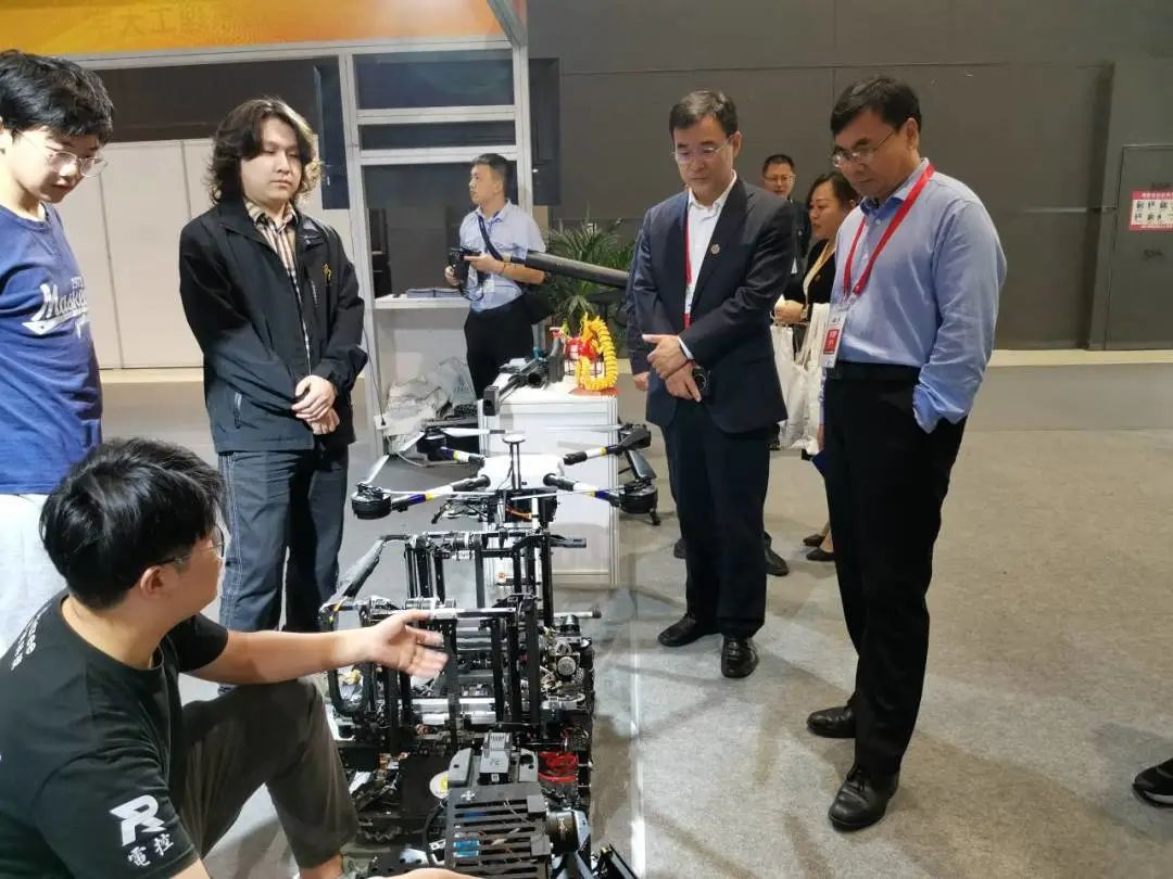 队员们责任在肩,认真布置展位,确保万无一失。以最好的状态参加展会!战队自主研发的机器人得到了胡兴禹书记的高度赞扬和认可。诸多高新技术企业也对战队研发成果产生了浓厚的兴趣,并且与我们交流了很多专业问题。在我们详细展示机器人的同时,也引导企业人员体验了机器人的便捷操作和优良性能,获得好评。