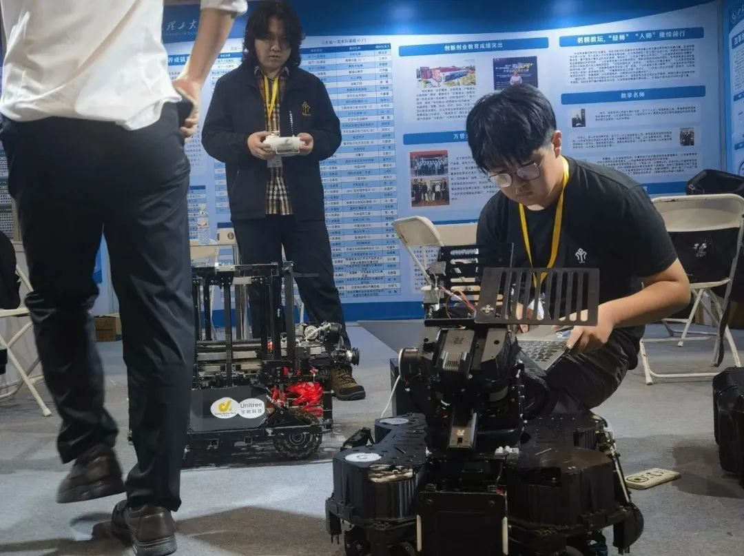 队员们根据参展要求,对展示的机器人进行检查维护,试验机器人动作的流畅性,保障参展工作顺利进行。