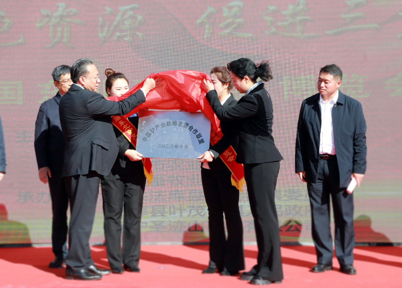 交易博览会上,中国畜牧业协会驴业分会会长王延涛致辞;王永威、孙野共同为中国驴产业战略发展合作联盟揭牌。