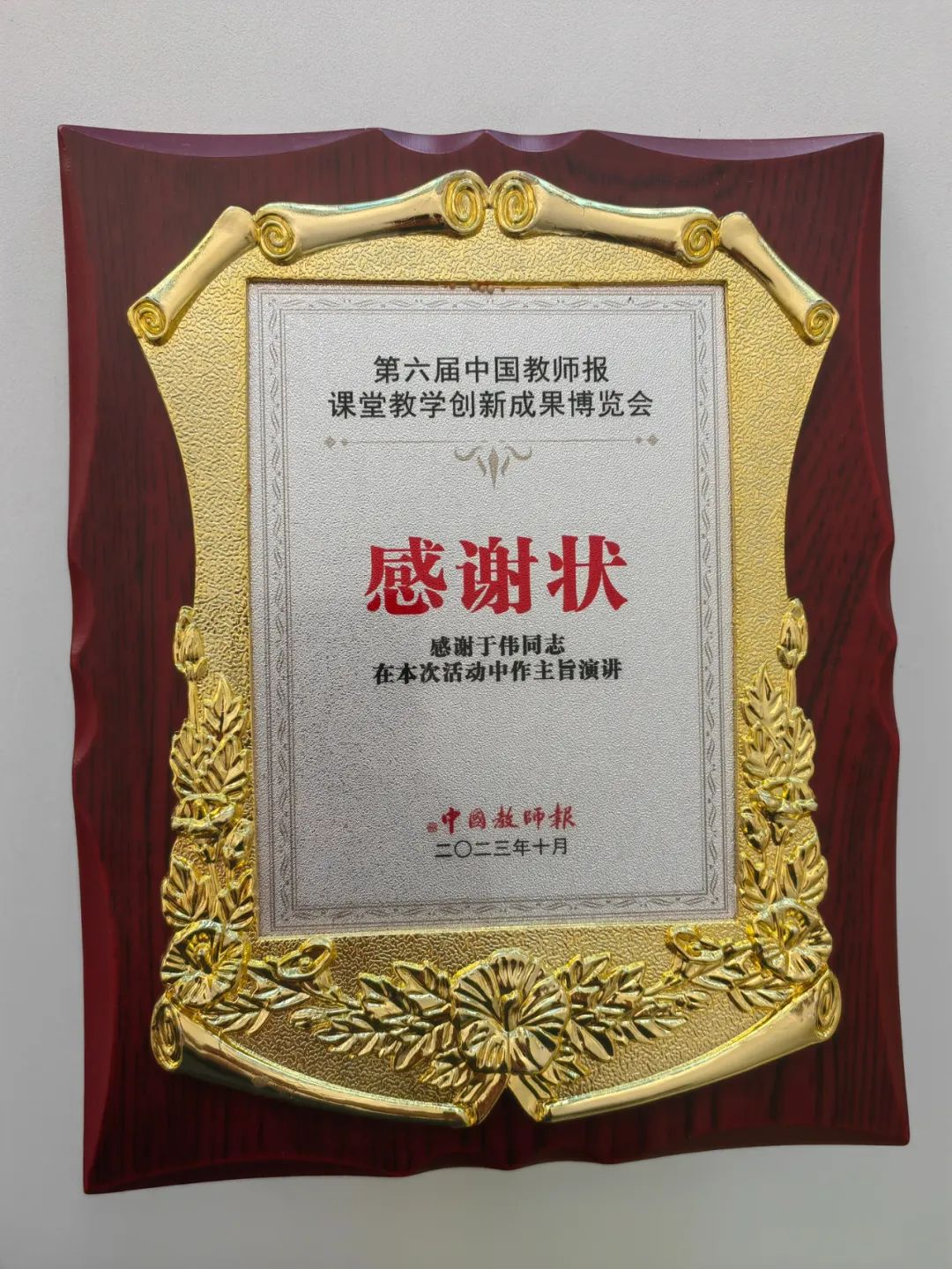 在本次会议中,众多知名专家、校长为与会嘉宾做了成果分享。我校的“率性教学”2020年曾被评为课堂改革样本,于伟校长应邀做大会主旨报告。于校长的报告中,充实了近几年的研究成果,体现了率性教学的迭代创新和附小人孜孜以求的研究精神。“有过程的归纳教学”的理论创新与实践探索是课程改革由“脑部”向“末梢”做细做强的成功范例,收获了现场一千多与会教师的热烈掌声。为感谢于校长及团队的贡献,大会特别颁发了感谢状。