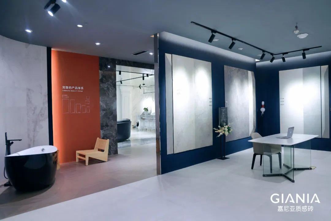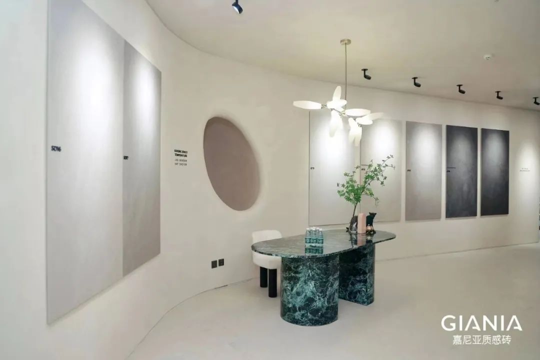 嘉尼亚,作为一家领跑全球前沿设计趋势的国际化企业,本次总部展厅的设计,颠覆了行业传统展厅形象,创新十足。展厅以 自然丨共生丨包容 为主题,摒弃常规瓷砖展厅方方正正、有棱有角的设计,以流动的曲线弧形贯穿整体空间设计,并深度融入GIANIA品牌元素,意在传递自然、极简、舒适的生活理念。