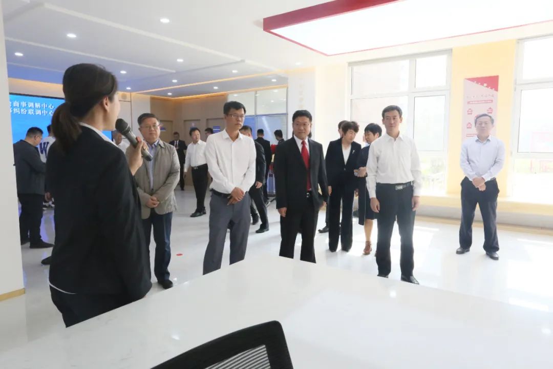 揭牌仪式后,与会领导实地视察宁津县津城街道津东党群服务中心,并对商会商事调解中心、商事纠纷联调中心建设提出意见建议。