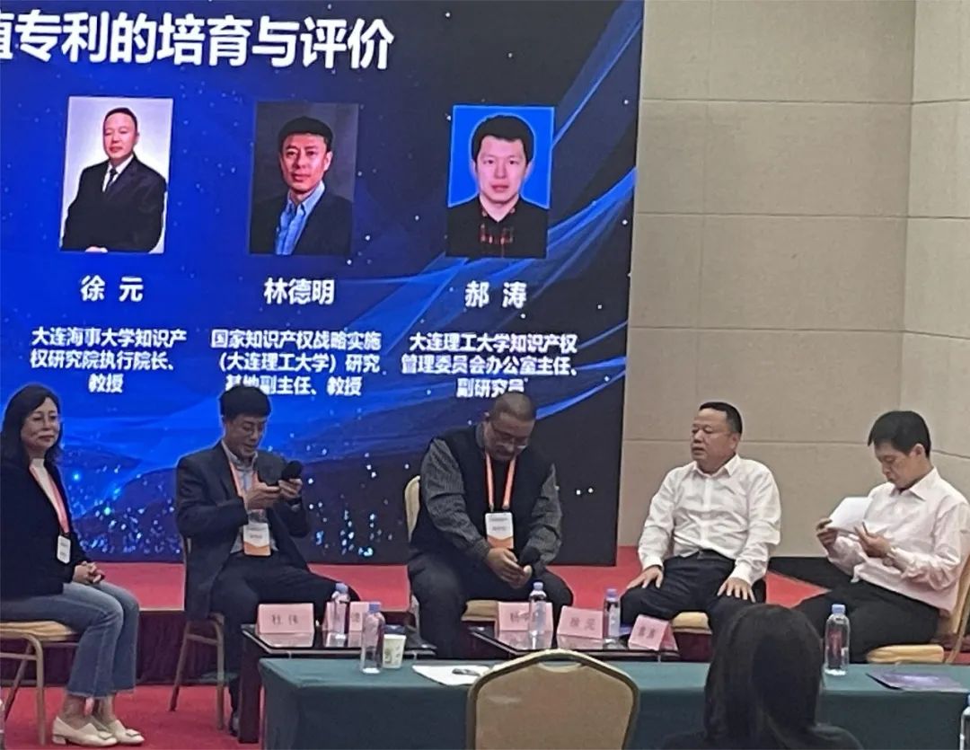 最后,五位专家举行圆桌论坛,就高价值专利的培育与评价表达各自的观点,并为与会人员答疑。杜伟(中国科学院大连化学物理研究所知识产权办公室主任、研究员)指出在早期的专利竞赛中产生了很多问题,无论是科研院所还是企业都需要反思,应从之前的求量向求质转变,同时,在专利价值上应从前中后多维度考虑。杨中楷(大连理工大学公共管理学院党委书记、教授)指出专利是逐步增值的过程,要建立有效的专利指标。专利“活”得时间越长,对经济的有益影响越大,为企业带来的收益越多。徐元(大连海事大学知识产权研究院执行院长、教授)指出专利追求高质量发展,更重要的是环境的培育,应创造出一个鼓励创新的文化环境,使高价值专利的产出常态化、自主化。郝涛(大连理工大学产学研与成果转化办公室副主任、知识产权管理委员会办公室副主任、副研究员)指出专利的成果转化应从专利生成的前期就进行布局和考虑,不能单纯靠后期的工作,要优化整个链条,才能更好地消化专利。