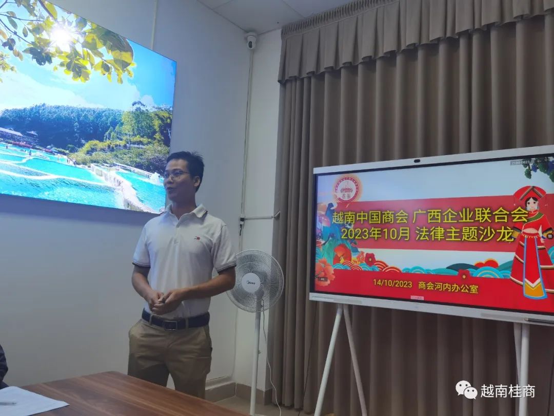 广西维冠律师事务所河内分所办公室主任黎重懋精通越南语,长期从事越南投资咨询事务工作的他,就《如何在越南合规经营》为主题,浅析越南外商投资主要形式和政府主管部门、在越外资企业经营过程注意事项等内容。