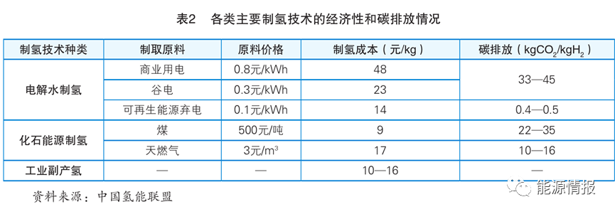 由表2可见,利用光伏风电等可再生能源的弃电造氢,在碳排放量方面虽然具有绝对优势,但综合来看现阶段绿氢生产的经济性相比灰氢、蓝氢并不突出。