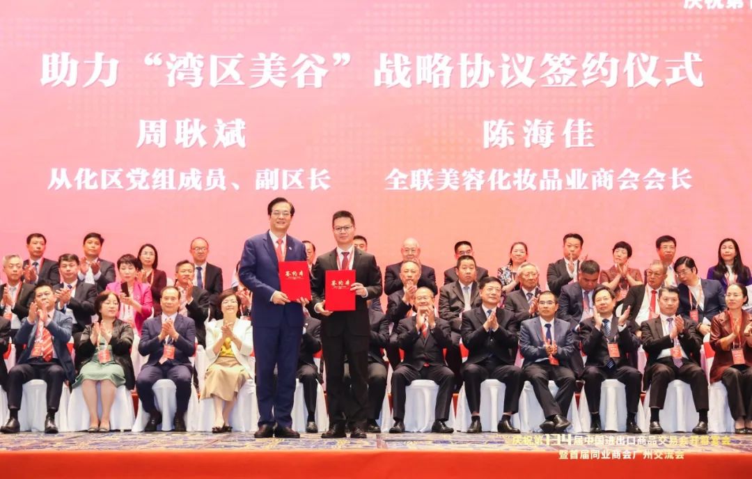 活动中,全联美容化妆品业商会与广州从化区签订了助力“湾区美谷”战略协议,穗港澳餐饮商协会、穗港澳珠宝首饰行业商协会、穗港澳时尚产业等3个联盟举办成立仪式。