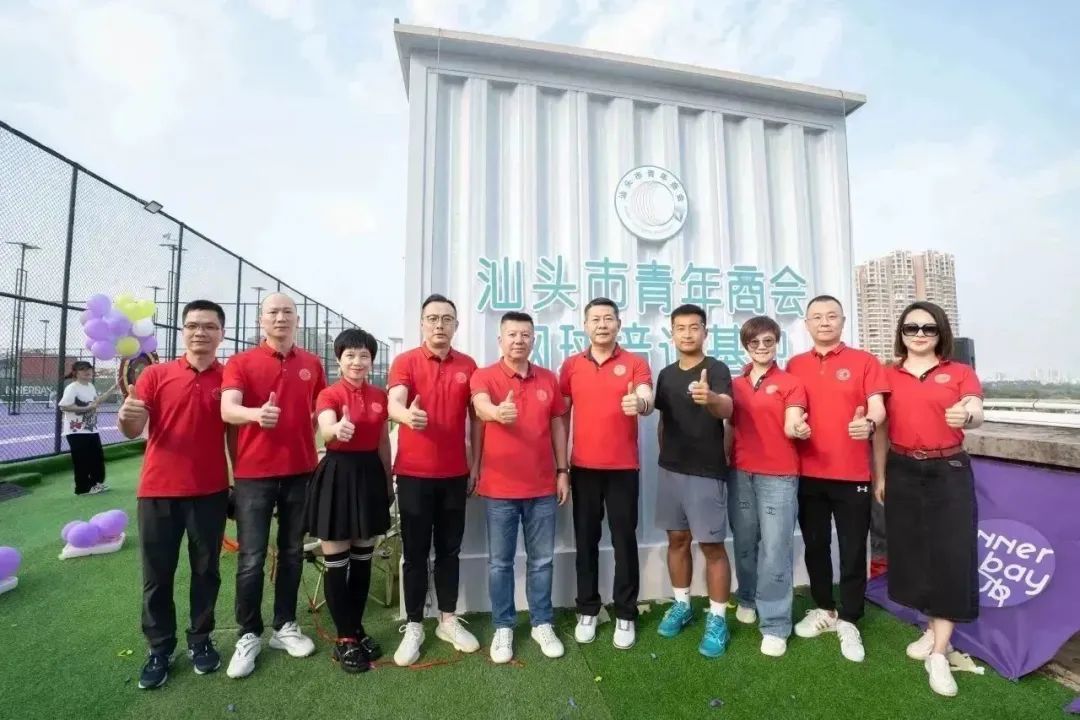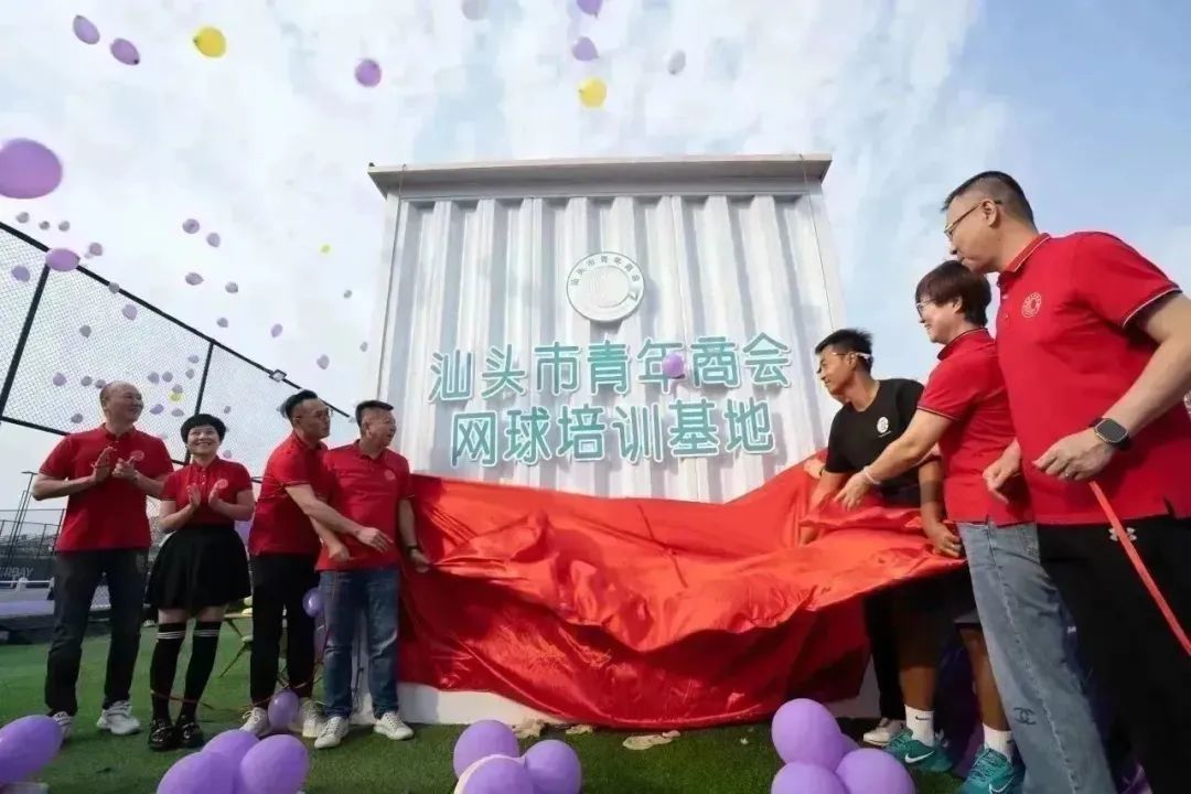 随着五颜六色的气球腾空而起,汕头市青年商会会长林锦松,执行会长徐丹,汕头银湾网球中心文皓总教练,常务副会长蔡少芬、副会长蔡彰、李彩銮、谢振浩,副监事长梁斌共同为汕头市青年商会网球培训基地揭牌。