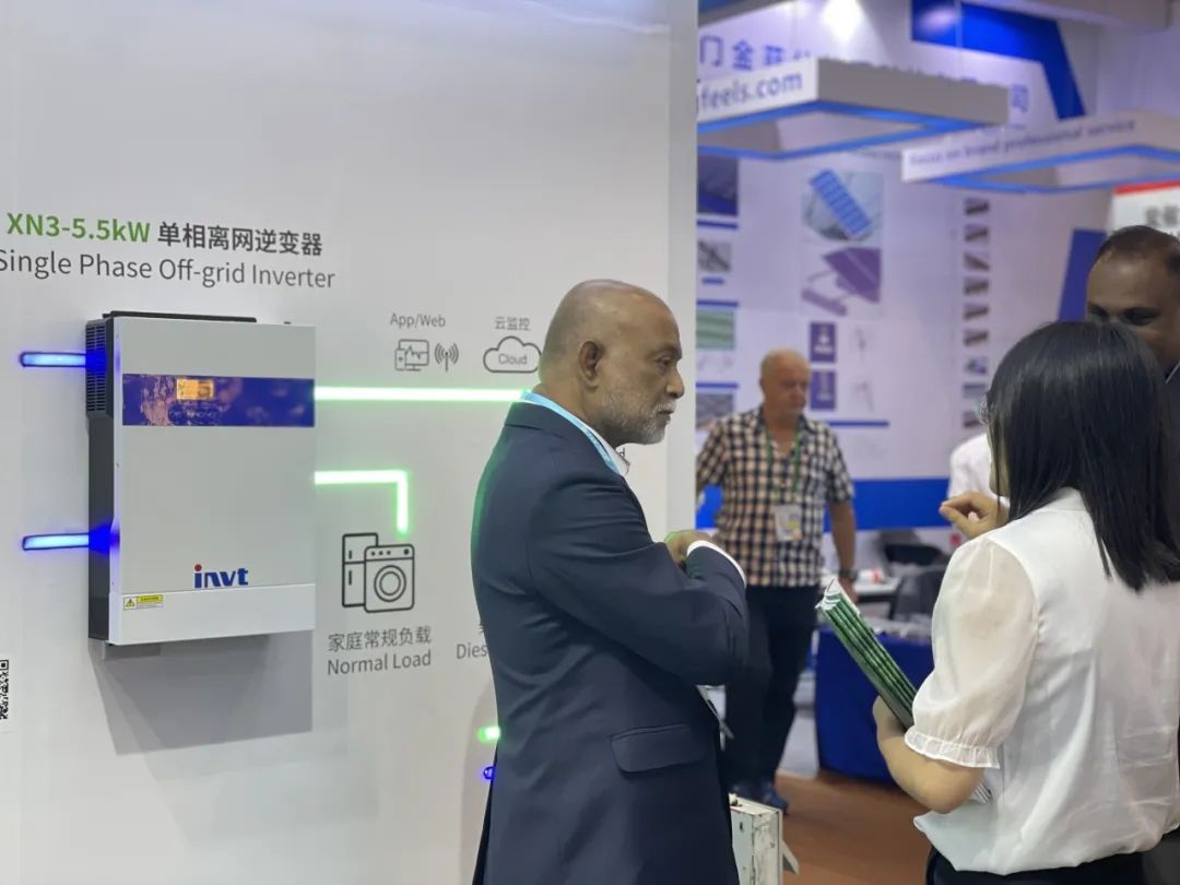 开展首日,英威腾光伏展位便人气爆棚,吸引了众多国内外专业观众驻足观看、咨询产品详情和合作方式,英威腾光伏专业的销售和技术团队热情地与这些客户进行商务洽谈和技术交流,现场交流氛围热烈非凡。