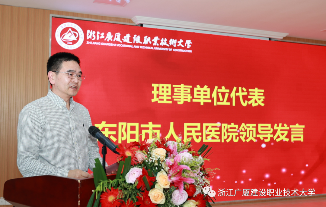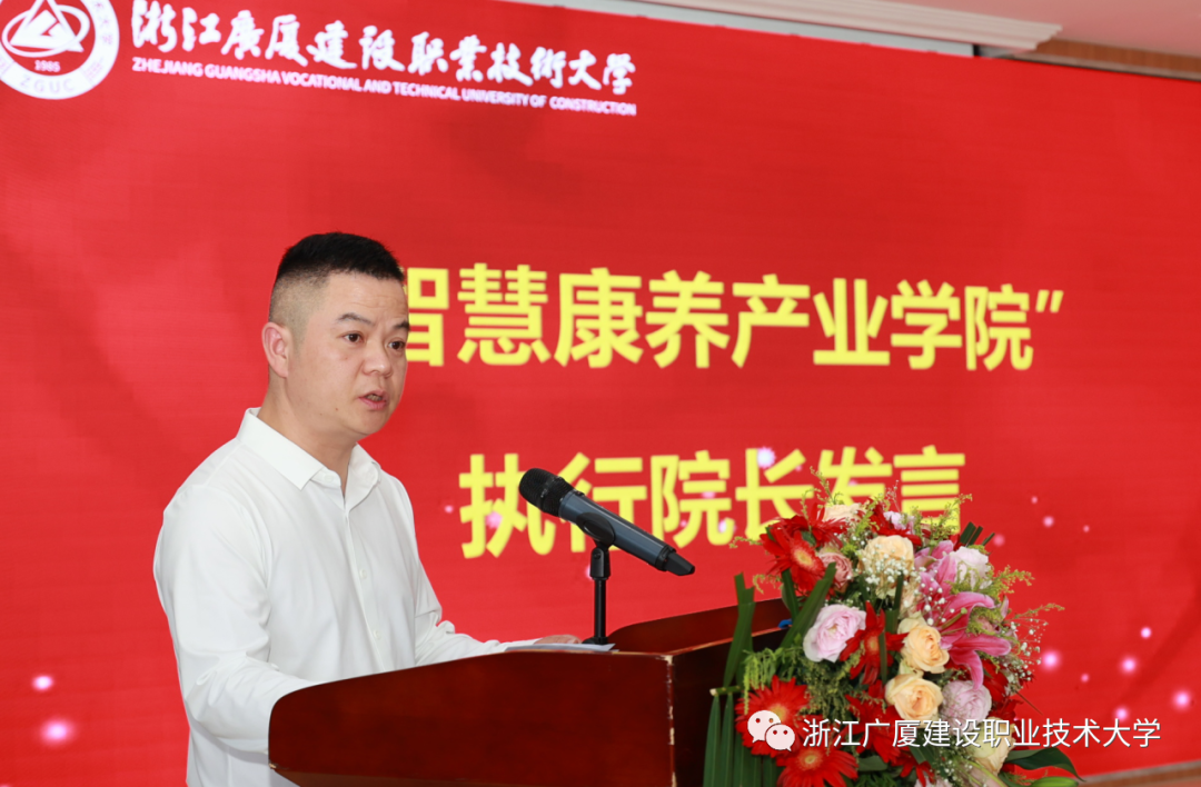 广厦大学党委书记、董事长奚建华在致辞中表示,学校致力于推动地方健康产业发展,着重瞄准东阳及周边区域健康管理类人才链,探索基于政校行企深度合作的本地化办学新模式,积极推进健康管理类人才培养,赋能健康产业全领域职业培训,打造高水平产学研服务平台,构建政校行企人才双向流动机制,形成广厦大学特色办学品牌,服务地方健康产业高质量发展。
