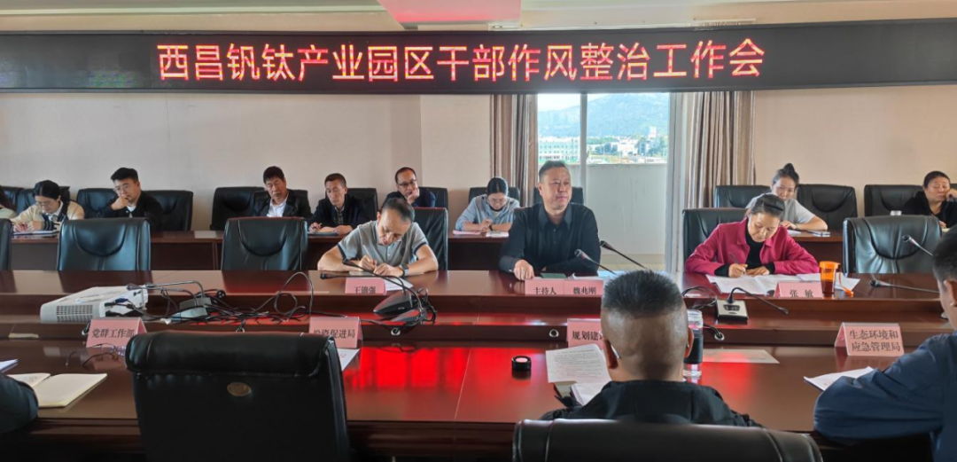 2023年10月18日上午,西昌钒钛产业园区召开干部作风整治工作会议,会议由西昌市委副书记,西昌钒钛产业园区党工委副书记、管委会主任魏兆刚主持。
