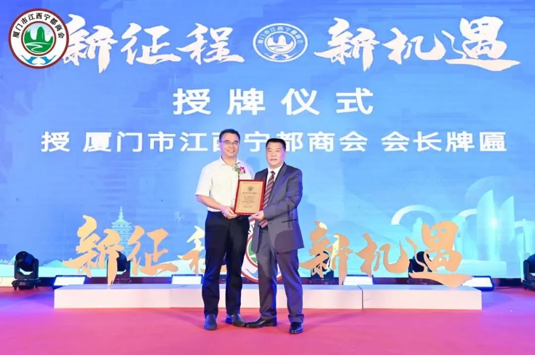 10月15日,厦门市江西宁都商会在厦门佰翔会展中心举行第一届第一次会员大会暨理(监)事就职典礼。厦门市工商联党组成员、副主席邱加海出席并为新任会长授牌。