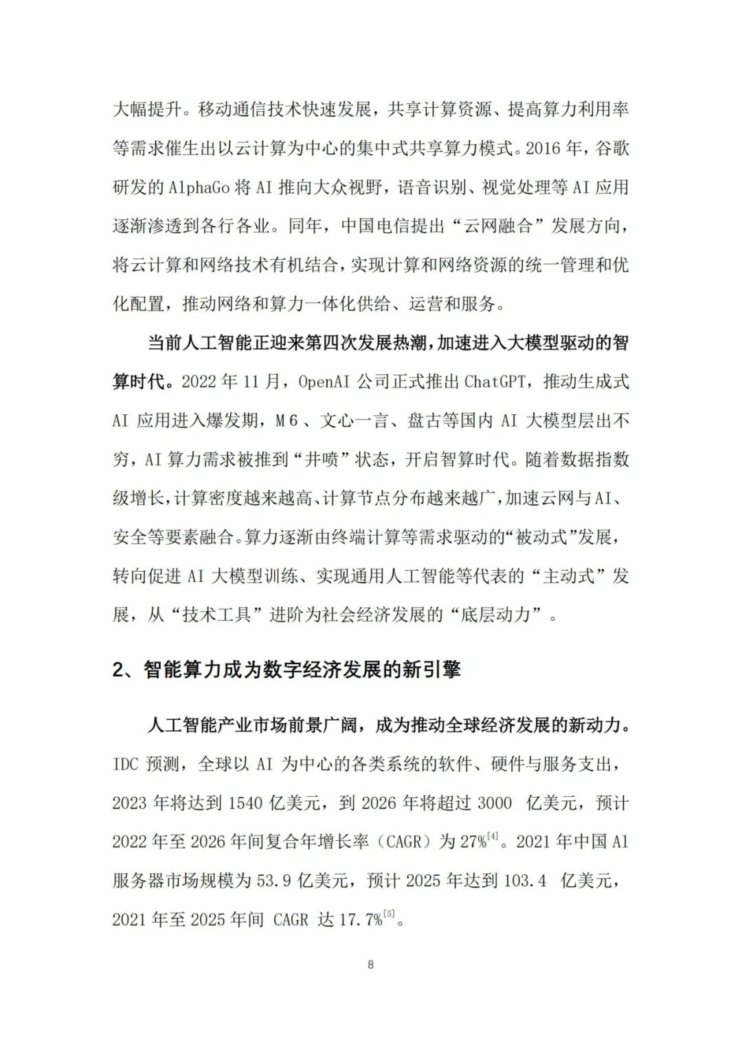 智算为经济增长提供数字转型、智能升级、融合创新的新动力,带动人工智能及相关产业倍速增长,成为我国数字经济发展的新引擎。