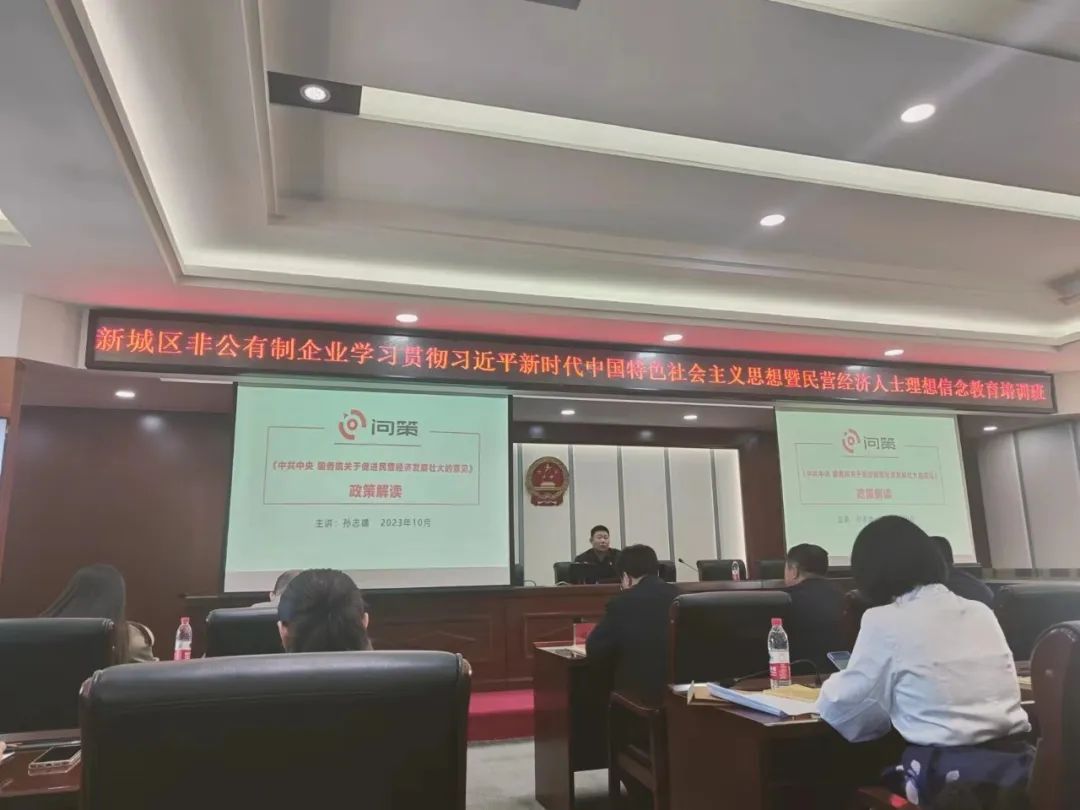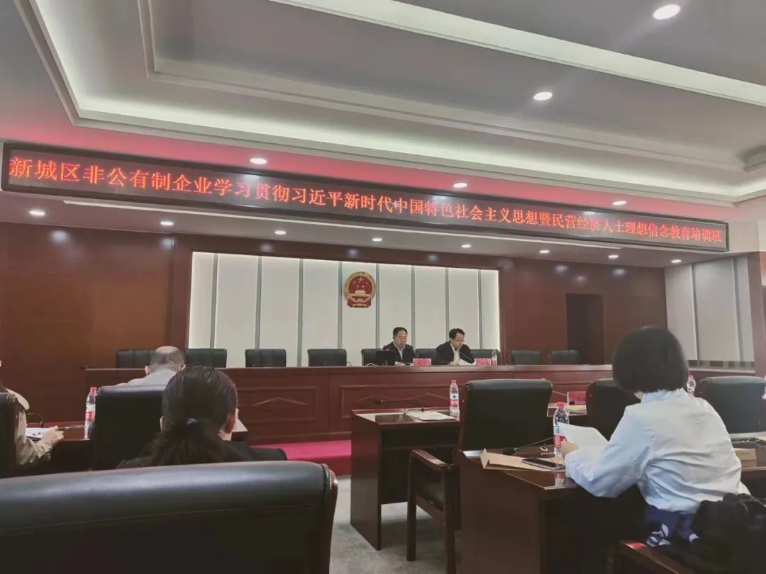 会议由区委统战部副部长、区工商联党组书记、常务副主席刘维祥主持,新城区人大常委副主任、区工商联主席高飞,领学了习近平在新时代中国特色社会主义思想教育工作会议上的讲话和《新征程上总书记指引民营经济发展方向》的相关内容;领新科技孙志雄对《中共中央国务院关于促进民营经济发展壮大的意见》进行了政策解读。