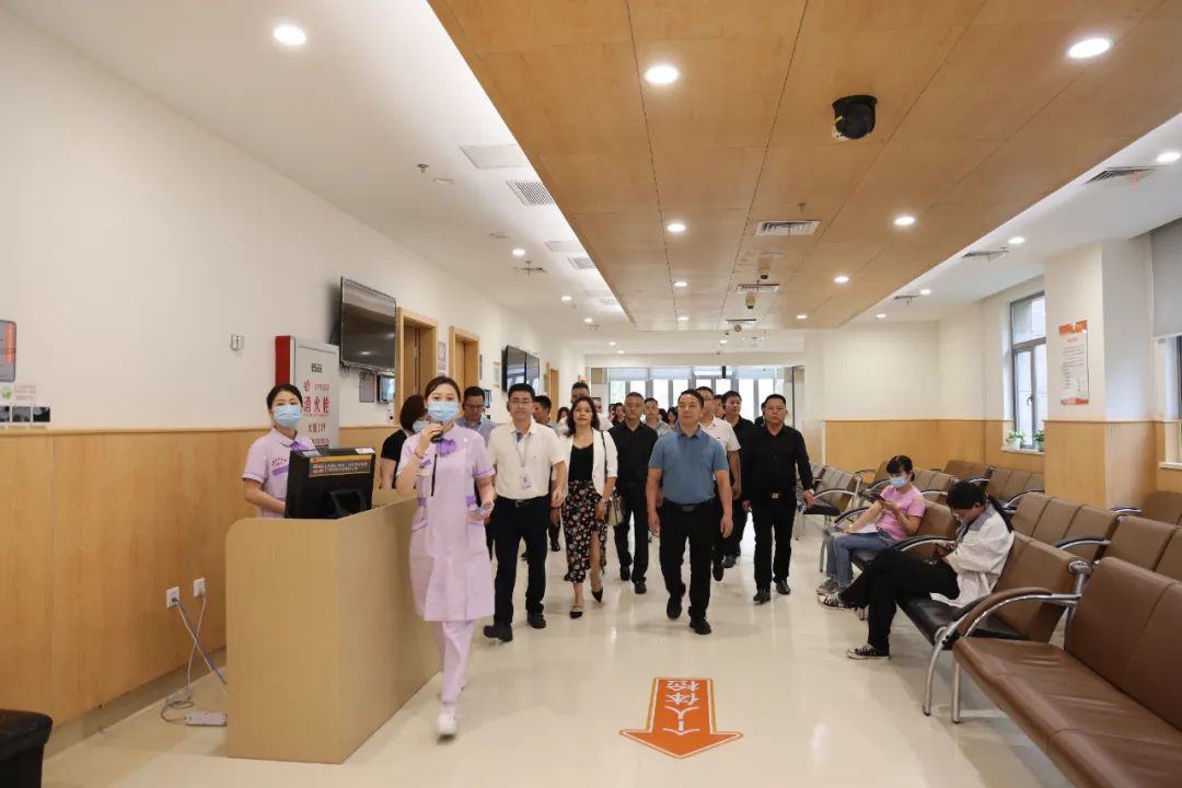 福建省江西商会青年分会一行应邀参观了体检科、泌尿肾脏病临床研究中心、特需门诊、胃肠疾病联合门诊等特色科室,小憩驿站、院史馆等地。王清茂副院长陪同讲解,对我院医疗设备以及就医环境做了简单介绍。