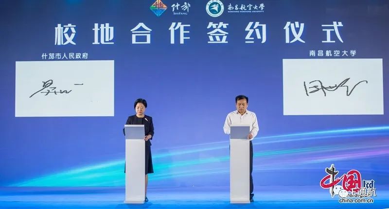 上午10时30分,在南昌航空大学、中国民航科学技术研究院航空器适航研究所、电子科技大学成都学院航空学院专家学者的见证下,签约仪式正式开始。签约仪式上,什邡市委副书记、市长晏世莹和南昌航空大学党委常委、副校长周世健正式签订战略合作框架协议,标志着什邡与南昌航空大学迈向深度合作。