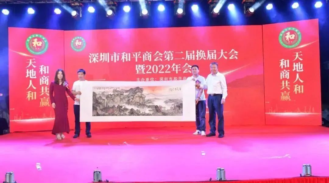 大会选举了梁西欣为深圳市和平商会第二届会长。活动期间,曾秀明会长、胡新添理事、邱惠娟秘书长代表我会,向深圳市和平商会送上纪念品——由中央电视台专访国家一级美术师、霍山画院院长、深圳市龙川商会艺术顾问骆振艺先生创作的山水画作品《龙吟万山静,潭澈一鉴开》,寓意并祝福深圳市和平商会在新一届领导班子的带领下,商会的发展越做越大。