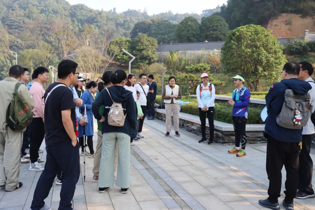 秋日艳阳高照,麓山层林习染,清风浮岚,惬意盎然。在领队的带领下,徒步活动浩荡开场,掩藏在山林中不被定义的路,在脚下蔓延丈量。大家在山林中有序前行,兴致勃勃地开启登山之旅,岳麓山里绿树成荫,光影斑驳,美不胜收,大家精神抖擞阔步向前,你追我赶的同时又携手并进、互帮互助。